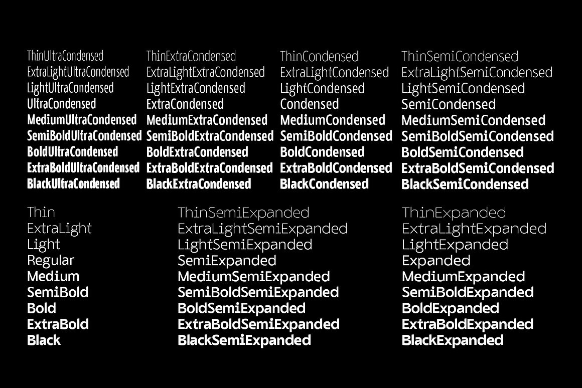 Trendy & modern font family with 63 fonts!