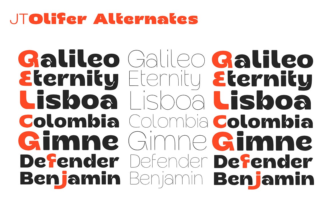 Font type of JT Olifer contains several nuances that combain aesthetic, contemporary and modern, furthermore we make some alternates glyph that have a friendly and subtle impression, for example ‘f’ the alternate of this name our font we designed is more circular and smooth.