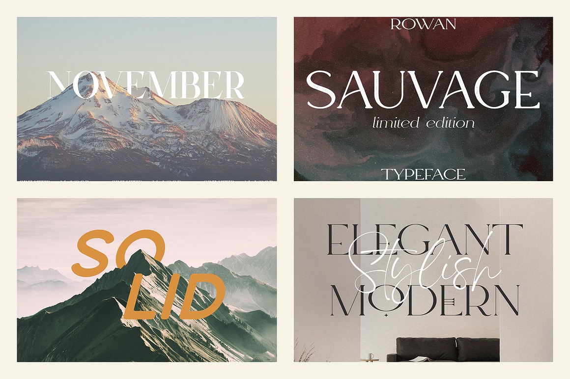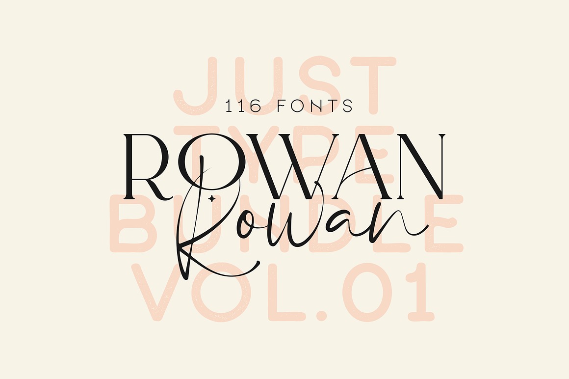 Rowan Typeface (116 Styles, Script): Rowan is a script typeface with an astounding 116 styles. Whether you need a casual or formal script font, Rowan offers a plethora of options to suit various design needs.
