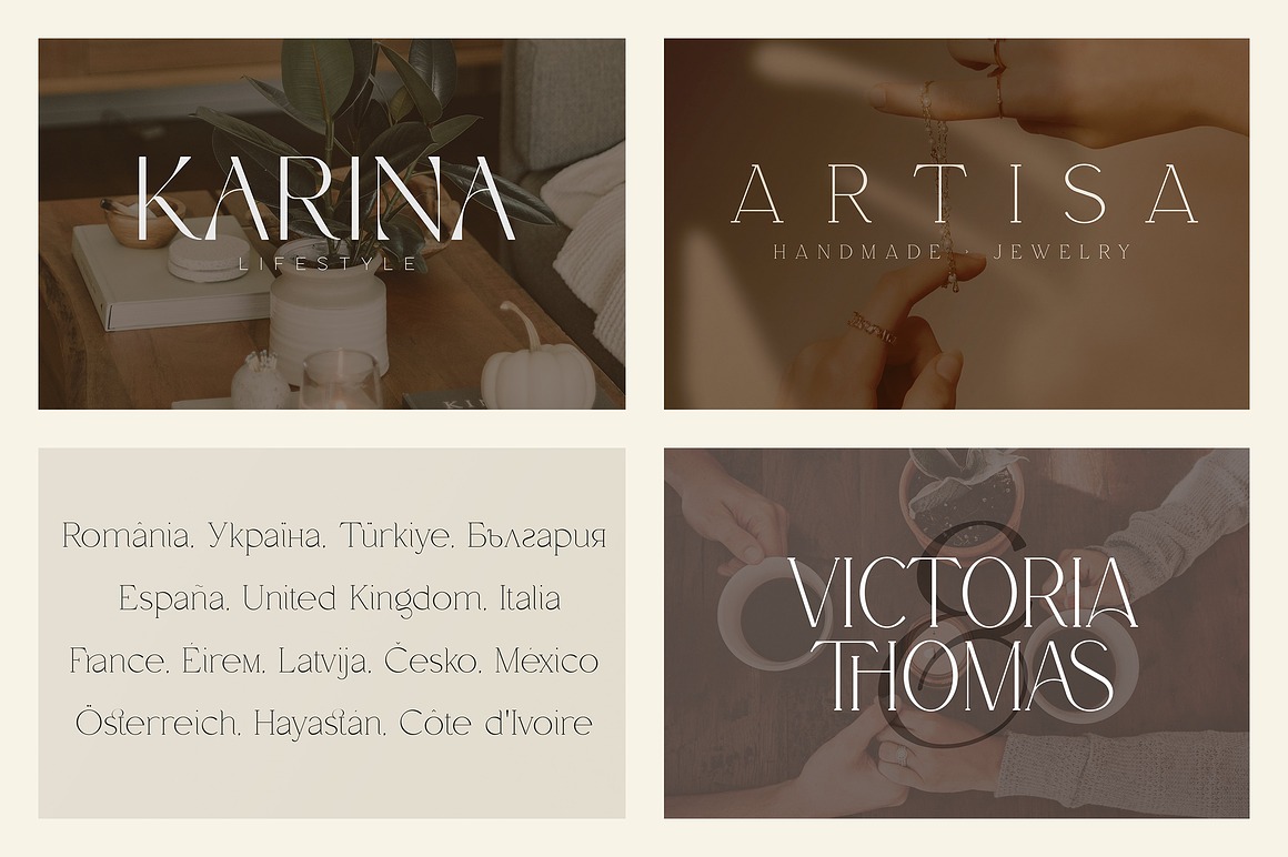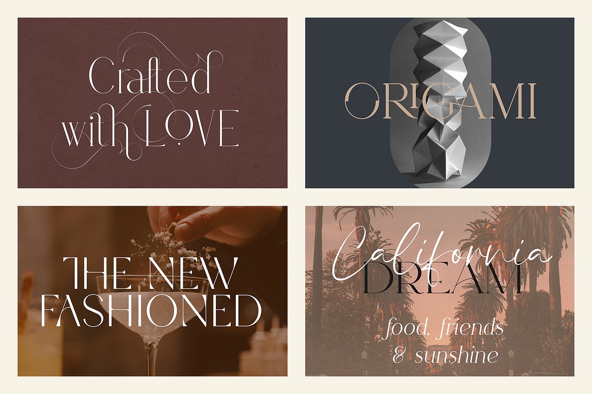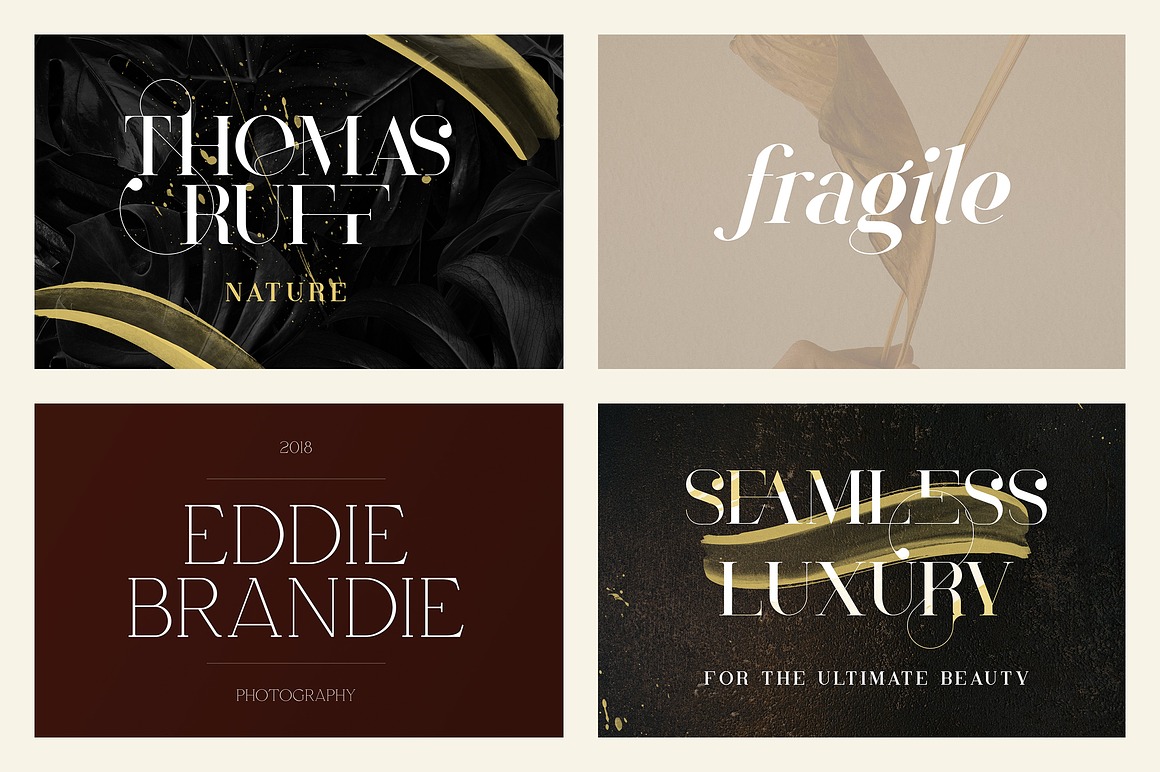 Stolen Love Elegant Serif Typeface: Stolen Love is an elegant serif typeface that exudes sophistication. Its timeless design is perfect for creating refined and luxurious visuals.