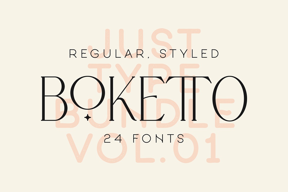 Boketto Elegant Typeface (24 Fonts): Boketto is an elegant typeface consisting of 24 fonts. It strikes a balance between modern and classic design elements, making it suitable for a wide range of projects.