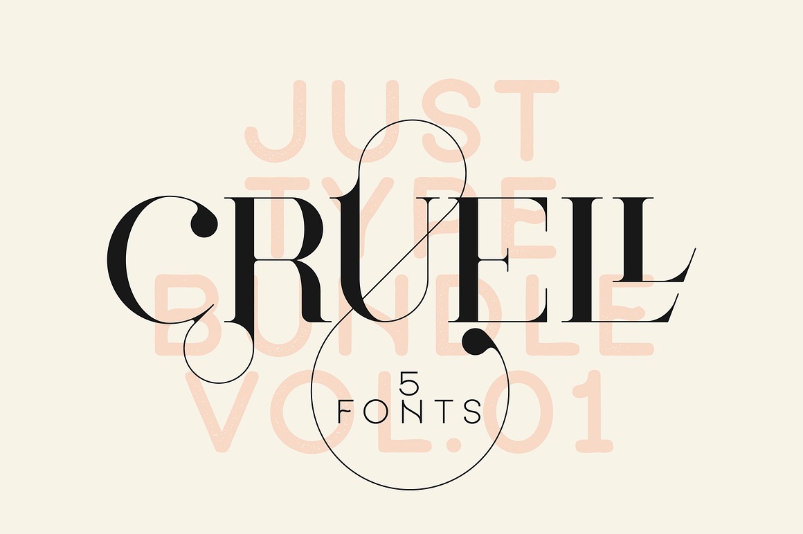 Cruell Serif Typeface (5 Fonts): Cruell is a serif typeface with five distinct fonts that offer a blend of classic and contemporary styles. It’s perfect for projects that require a touch of uniqueness.