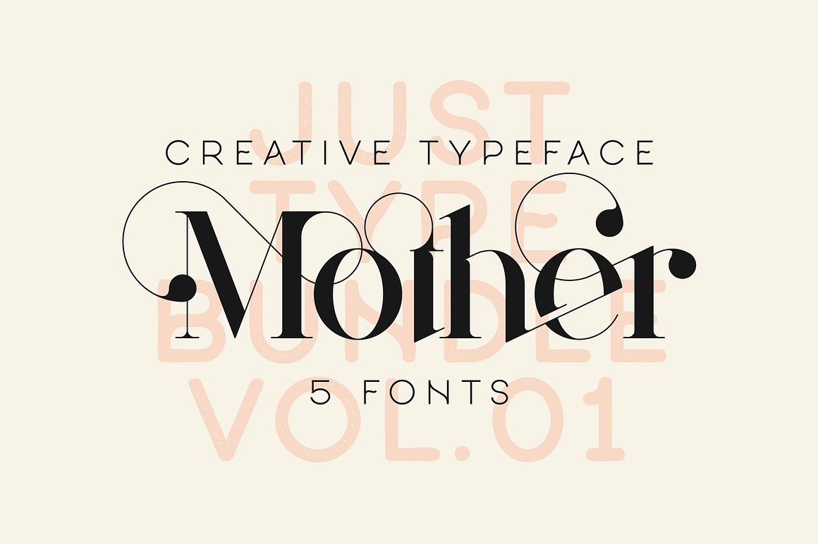 Mother Serif Typeface (5 Weights): Mother is a versatile serif typeface offered in five weights, providing flexibility for various design applications. Its readability and classic look make it a reliable choice.