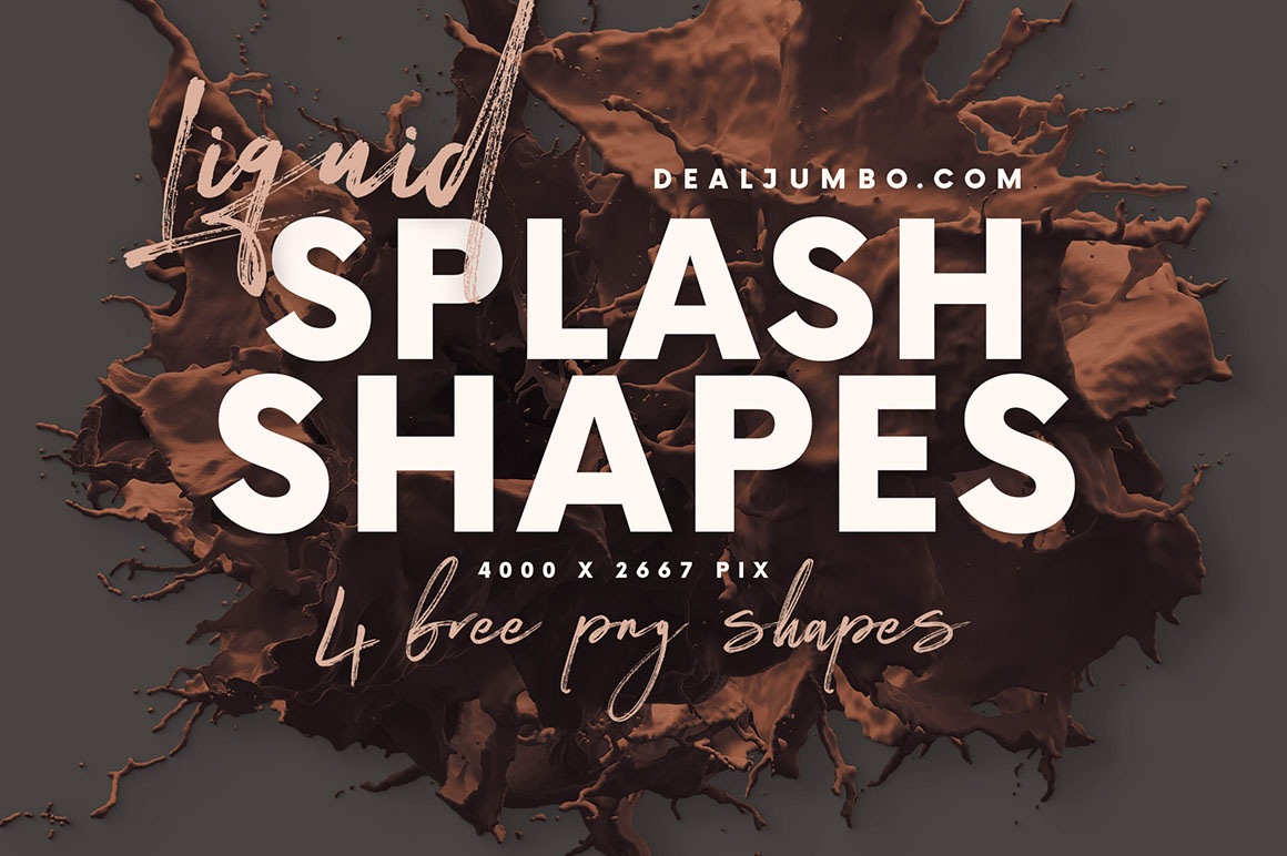 4 various color 3D liquid splash – hi-res PNG shapes with transparent background from MIIM Design. Download & enjoy 😉 Exclusive only for dealjumbo!