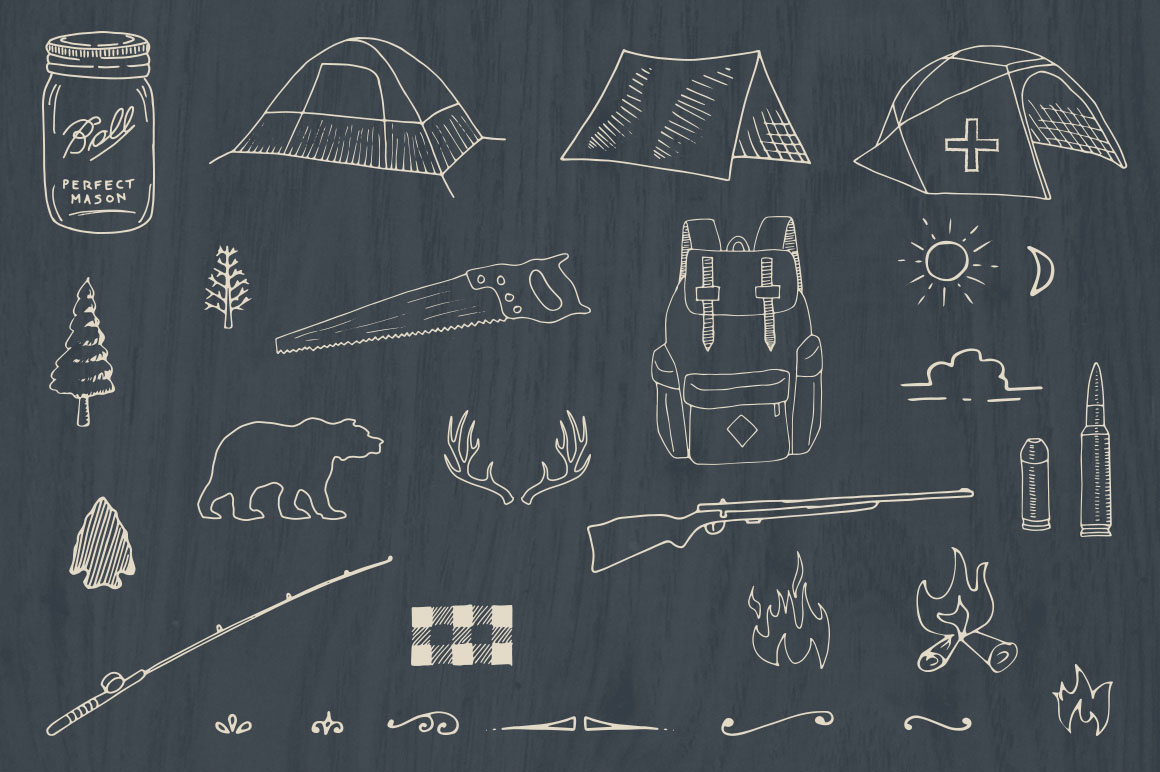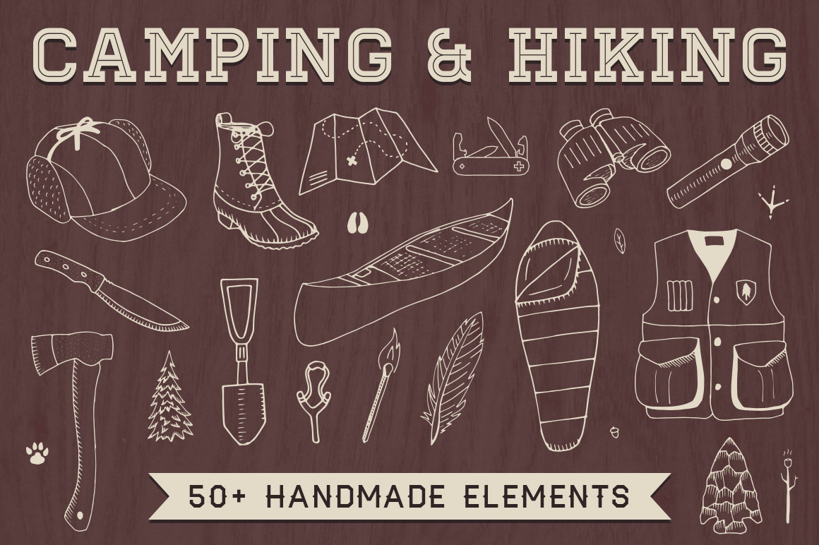 8. Hand-Drawn Camping & Hiking Elements by Adrian Pelletier