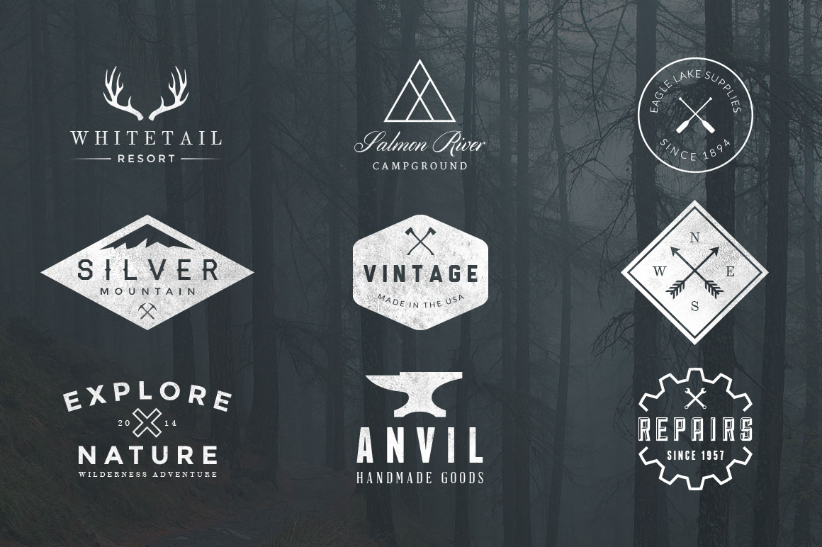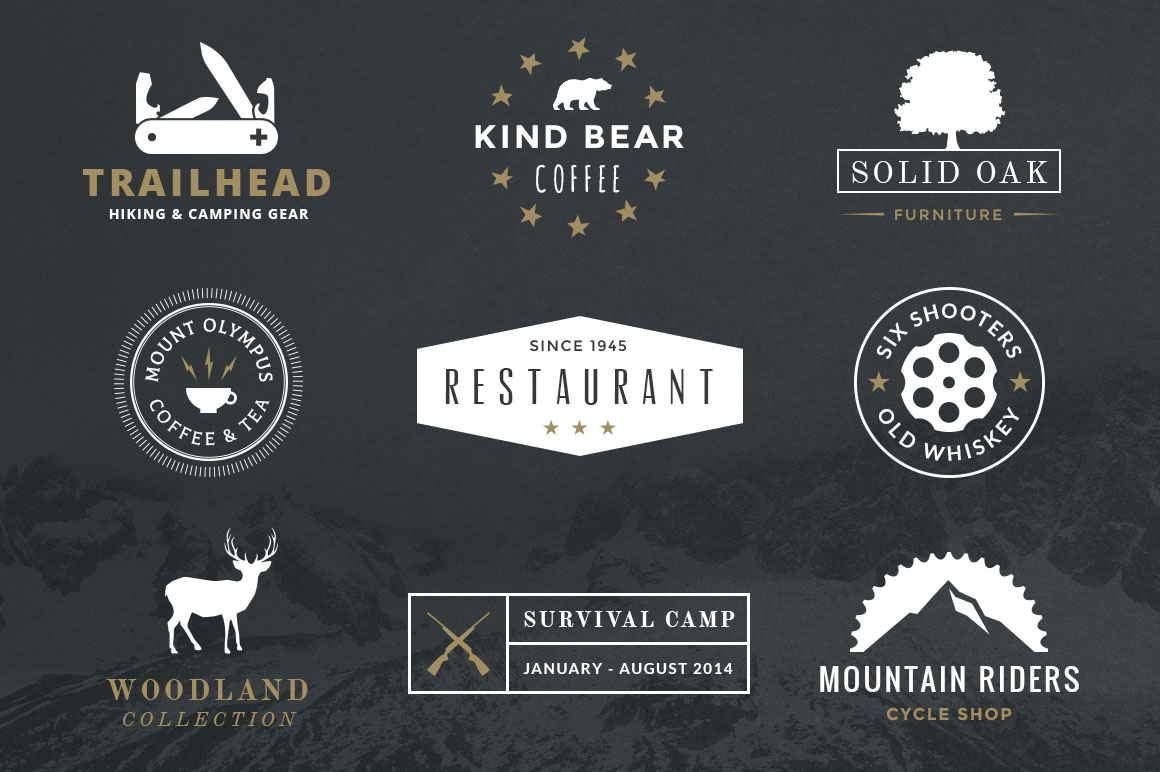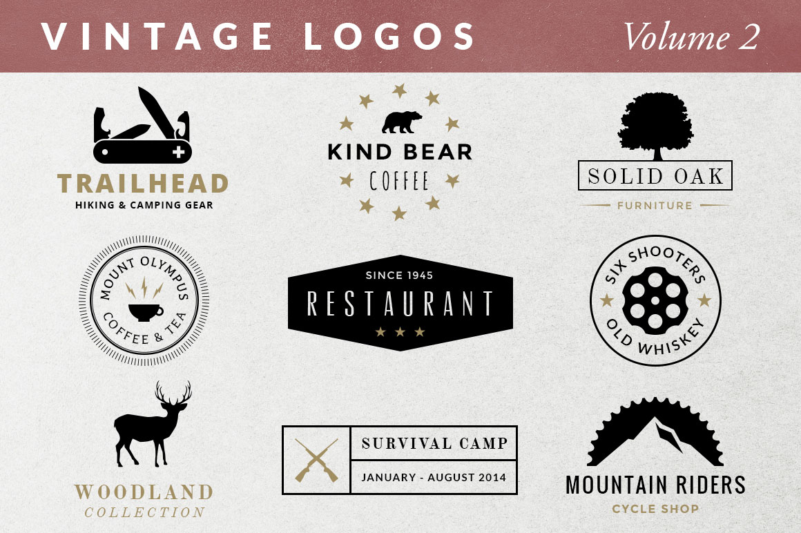Vintage Logos – Volume 2 includes nine handmade logos that would be perfect for websites, business cards, clothing, posters, and so much more. The following items are included in this set: Illustrator .ai and .eps files with all 9 logos as standalone groups. The text in all logos is also editable, Photoshop .psd file containing all 9 logos as editable smart objects and a couple example mockups, Text file that lists where to get all of the free fonts used in the logos.