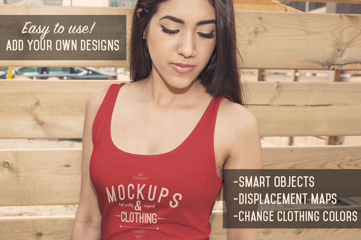 20 Professional Photo Shoot Mockups in High res (4800x3200px) Ready for print or web. Now with the Option to change clothing colors! Easily display your designs on ready made photo shoots with real models. This template set also comes with the popular “15 Vintage Photo Filter Actions” ($5 value). Easy to edit Smart Objects. Change the shirt color to anything you want as well as Heather Gray! Realistic textures, folds and displacement mapping. Your designs will look like they were actually apart of this photo shoot! There is a detailed help video included that walks you through the whole process!