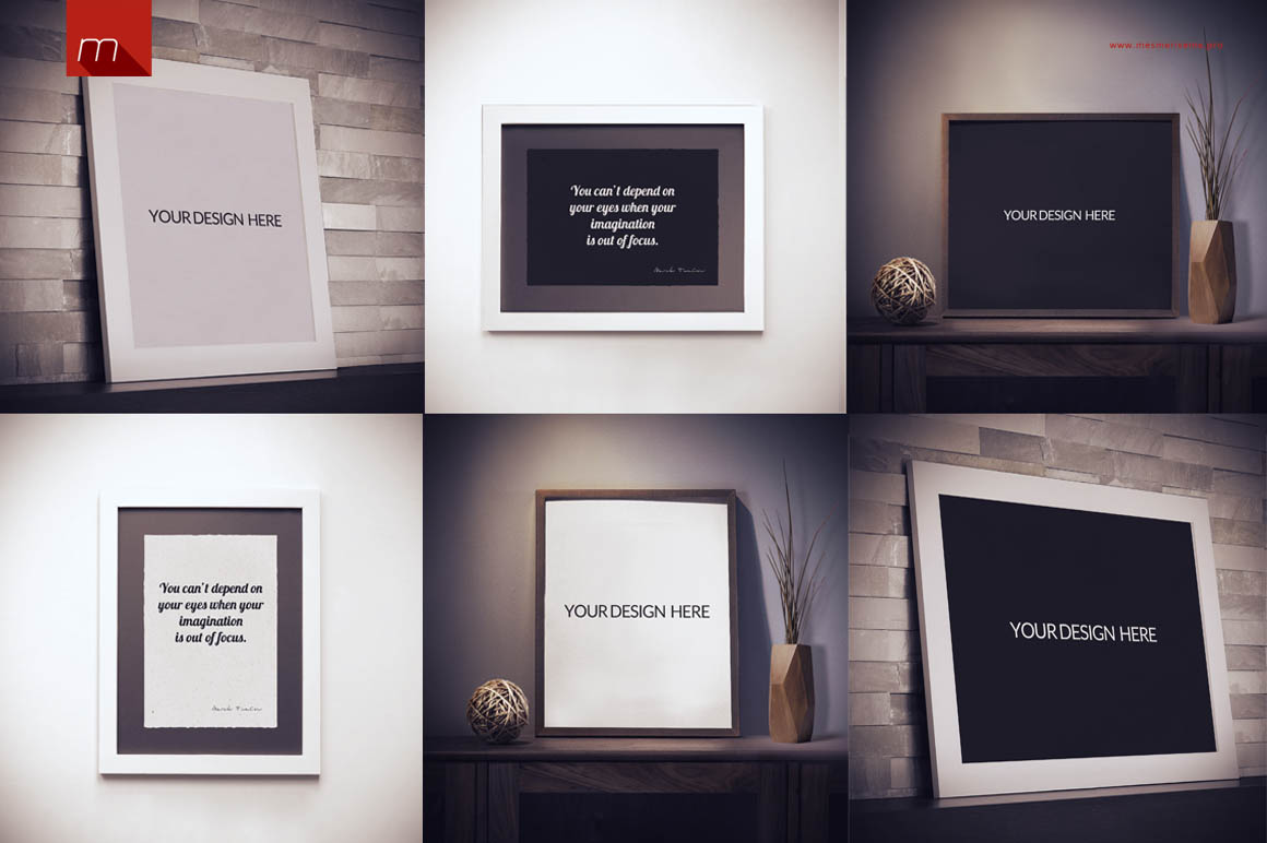 Modern Picture Frame Mock-up: 8 psd files 2000×2000; you can add design using smart objects; well oganized layers.