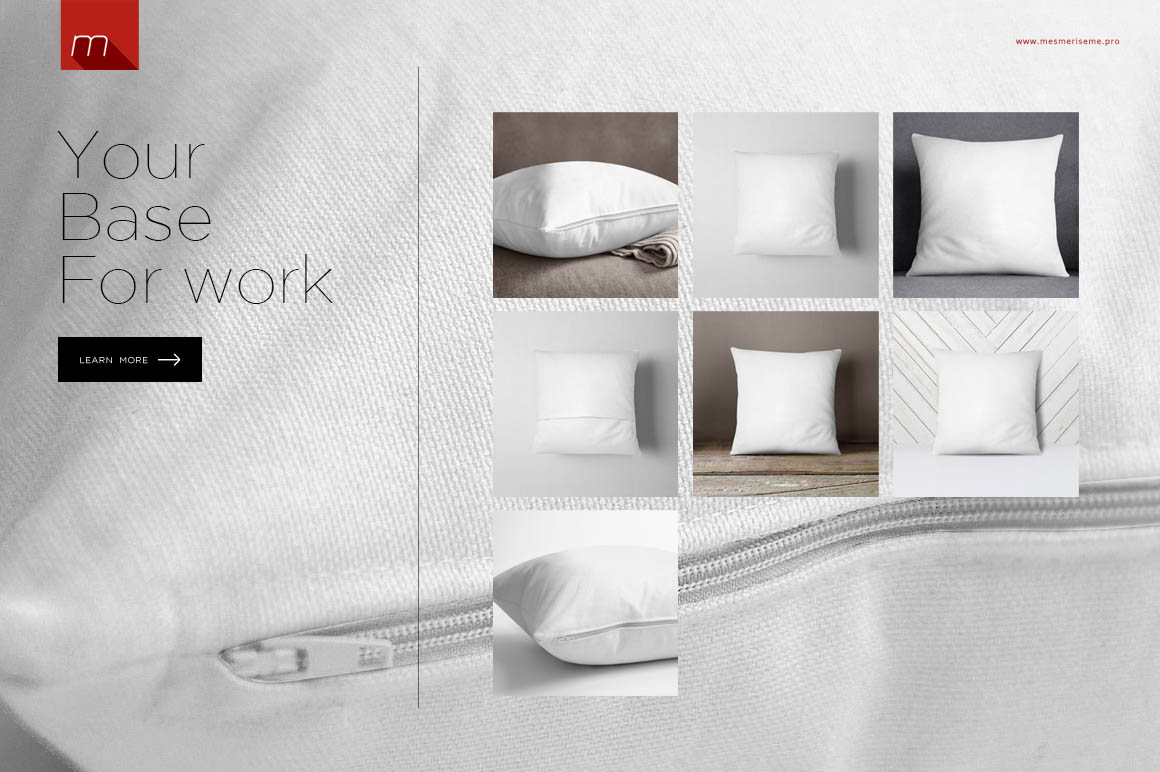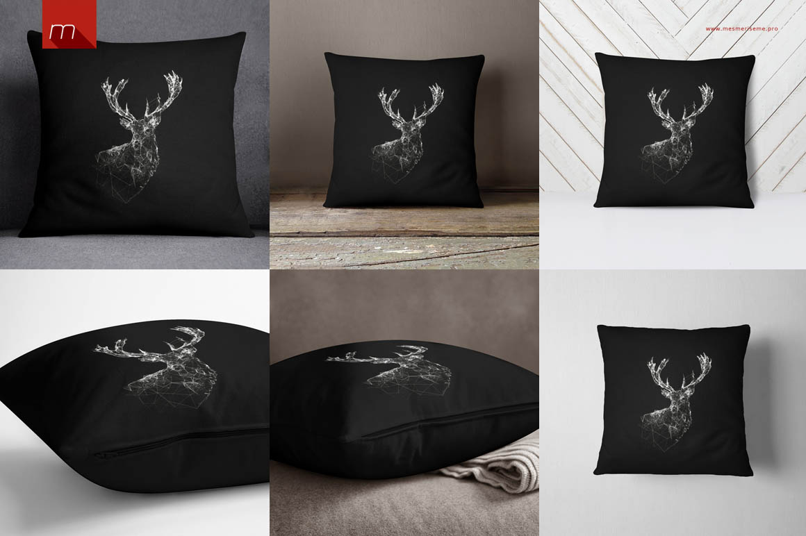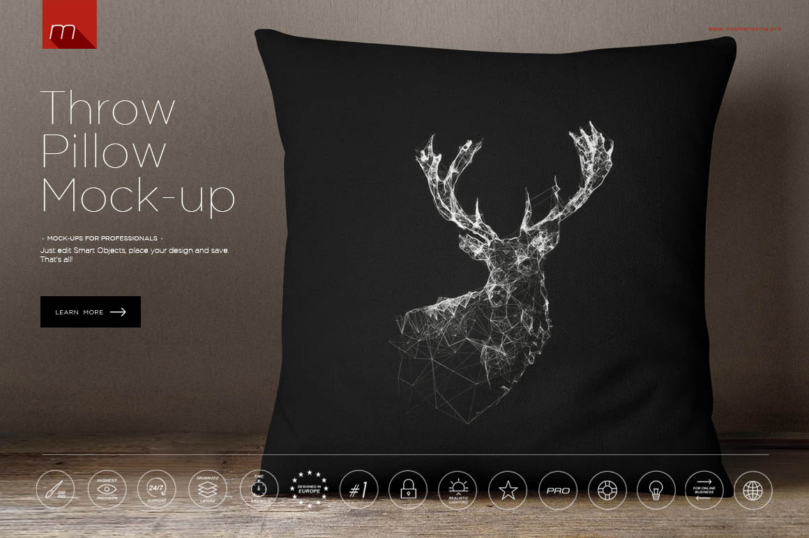 Pillow Mock-up: 7 psd files 2000×2000 px; 7 different views; You can change color and gradient of each part of material; You can put your own design using smart objects; well oganized layers.