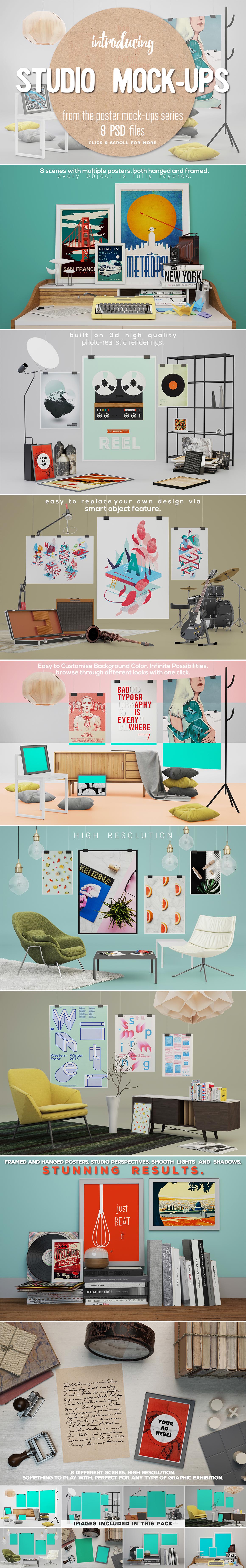 6. 8 Studio Poster Mock-ups by Northern Kraft
