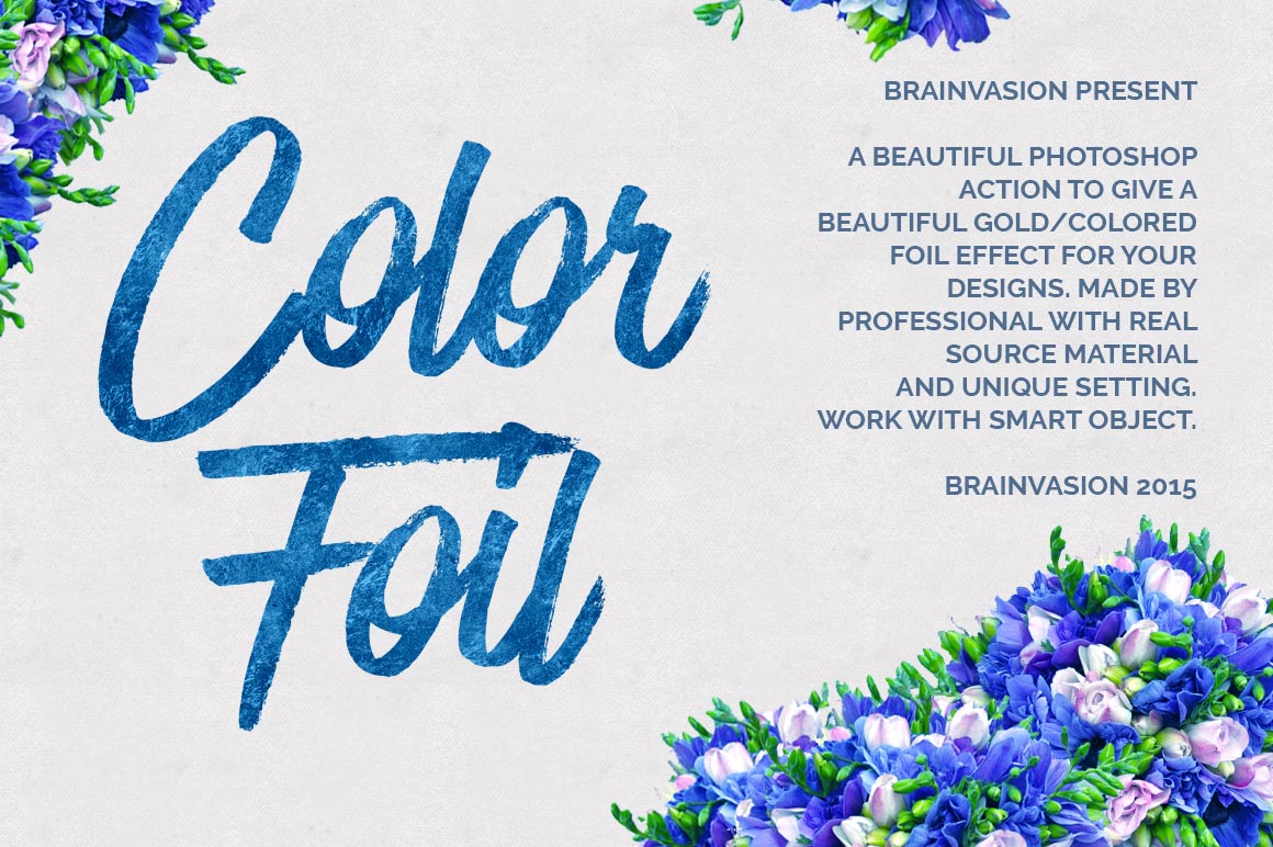 “Color Foil” is an unique Photoshop action with layer style method. It can give your vector, logo, text, or any other design a beautiful foil effect. Super easy to use, no skill required. Buy now and save your time!