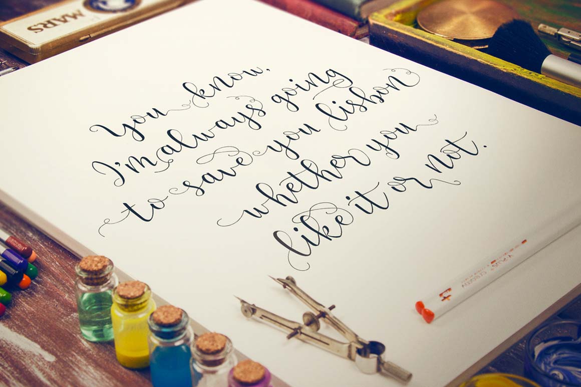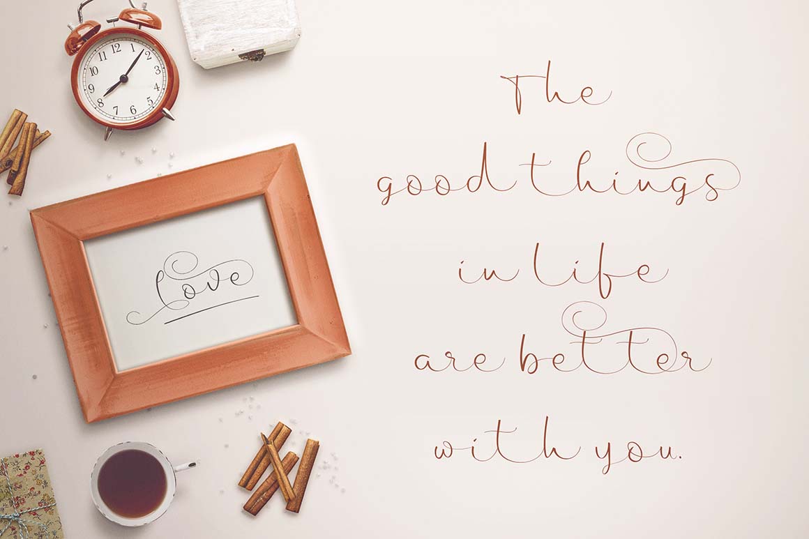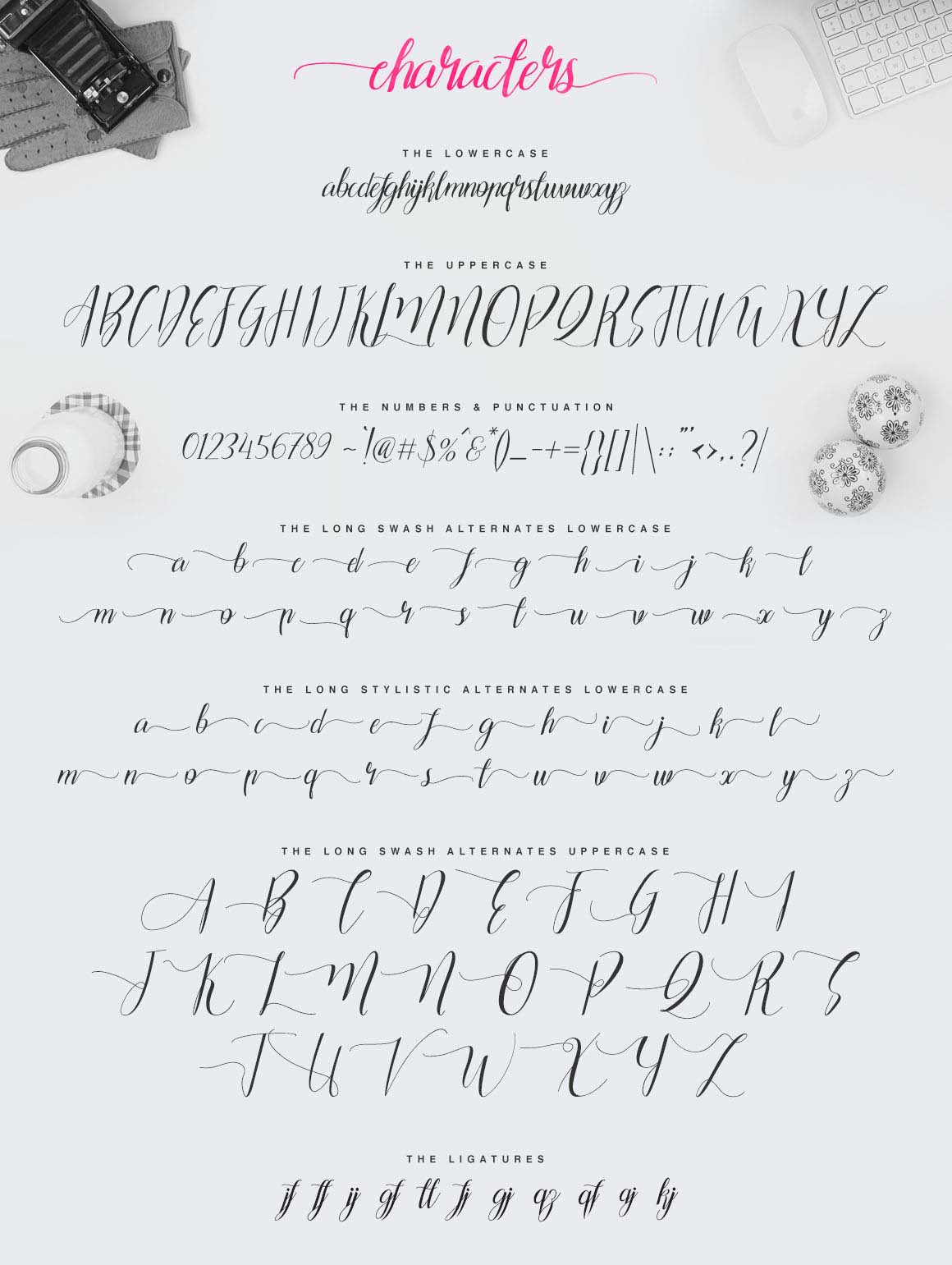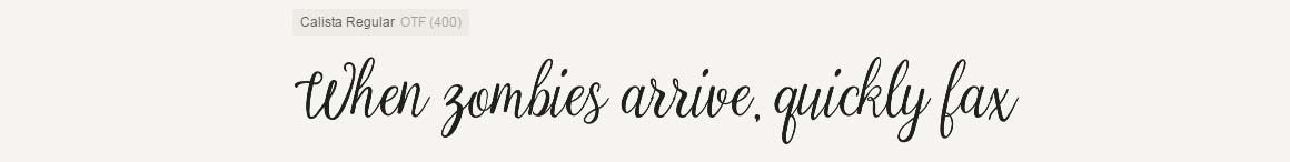 Calista Script is handwritten stylish copperplate calligraphy fonts, combines from copperplate to contemporary typeface with a dancing baseline, classic and elegant touch. Can be used for various purposes.such as headings, signature, logos, wedding invitation, t-shirt, letterhead, signage, lable, news, posters, badges etc. Calista Script features 440+ glyphs and 215 alternate characters. including initial and terminal letters, alternates, ligatures and multiple language support.