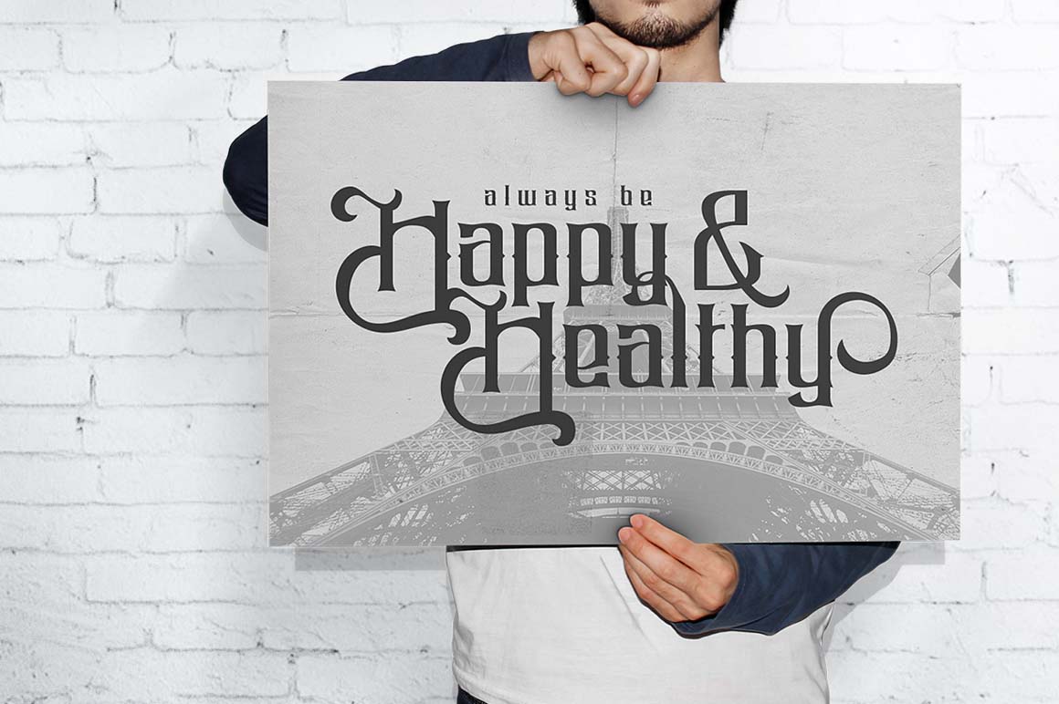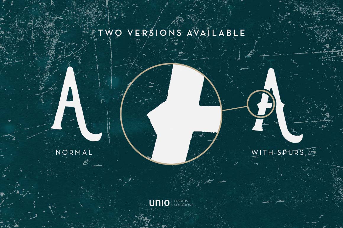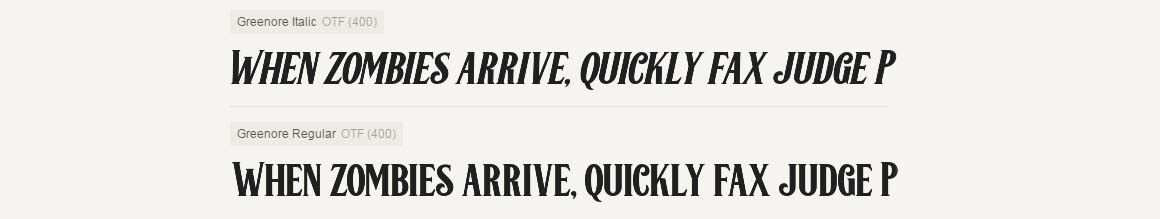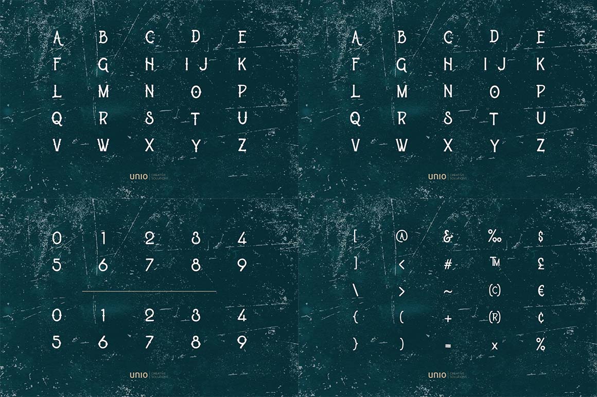 Introducing Greenore, a typeface with classic feel that inspired from letters on old liquor and brewery packaging. Carved with high attention to the details, giving this typeface a smooth yet crisp linework. Suits best for headlines, vintage themed-designs, quotes,etc. Combine Greenore with thin-script typeface to get a classy/elegant look. This font is so playful and easy to tweak, PLUS, packed with OpenType features and come in two style (Regular and Italic) to fulfil your drought at letter variations.