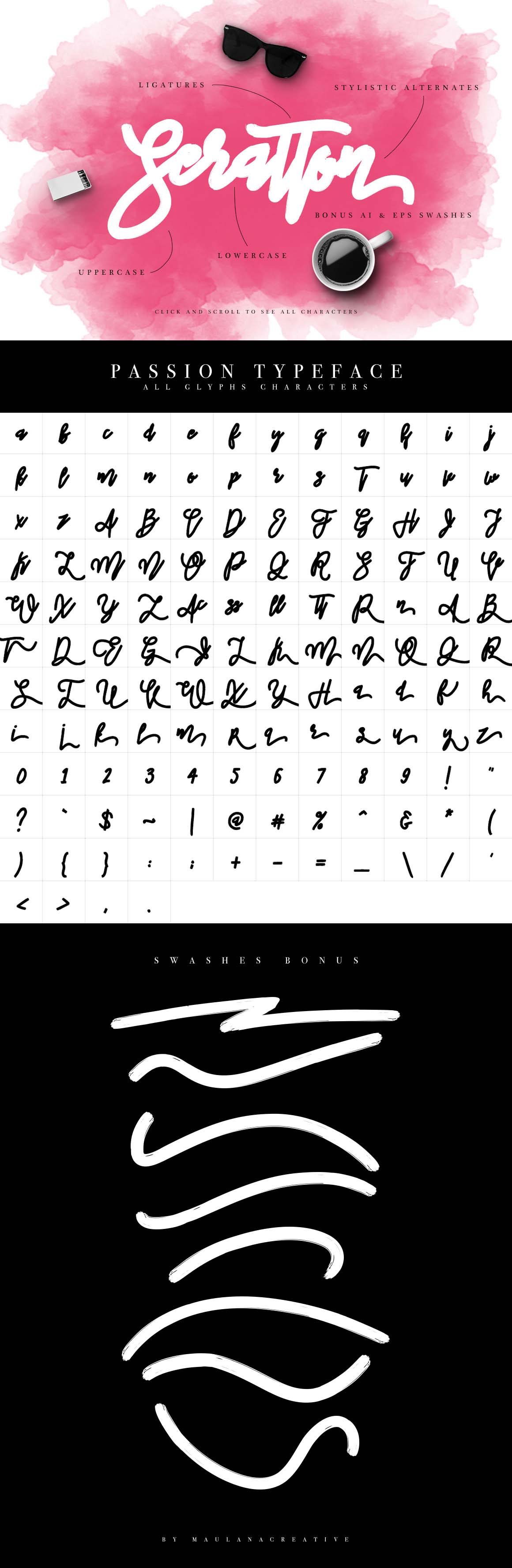 Give your designs an authentic brush handcrafted feel. “Passion Typeface” is perfectly suited to stationery, logos and much more.
