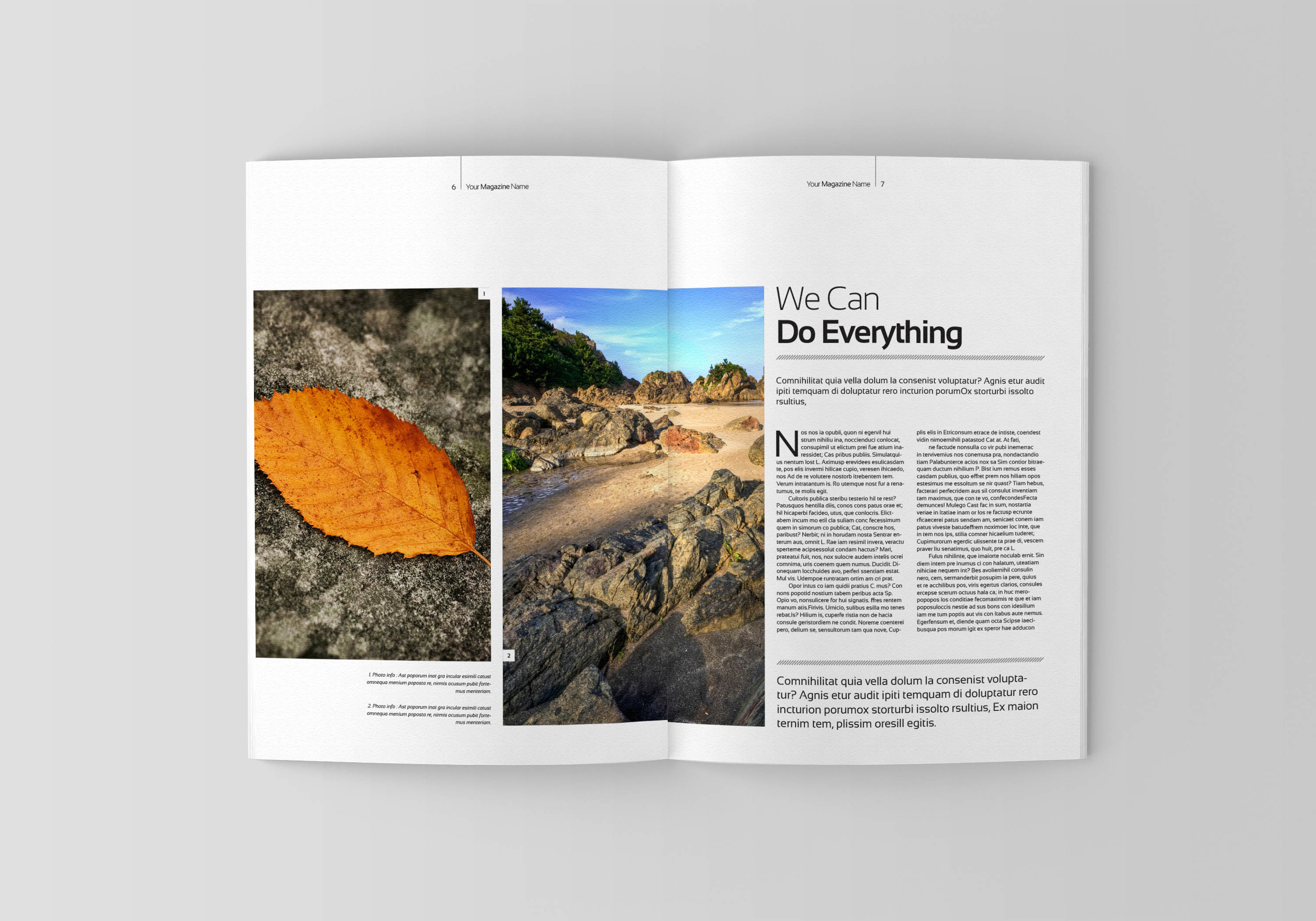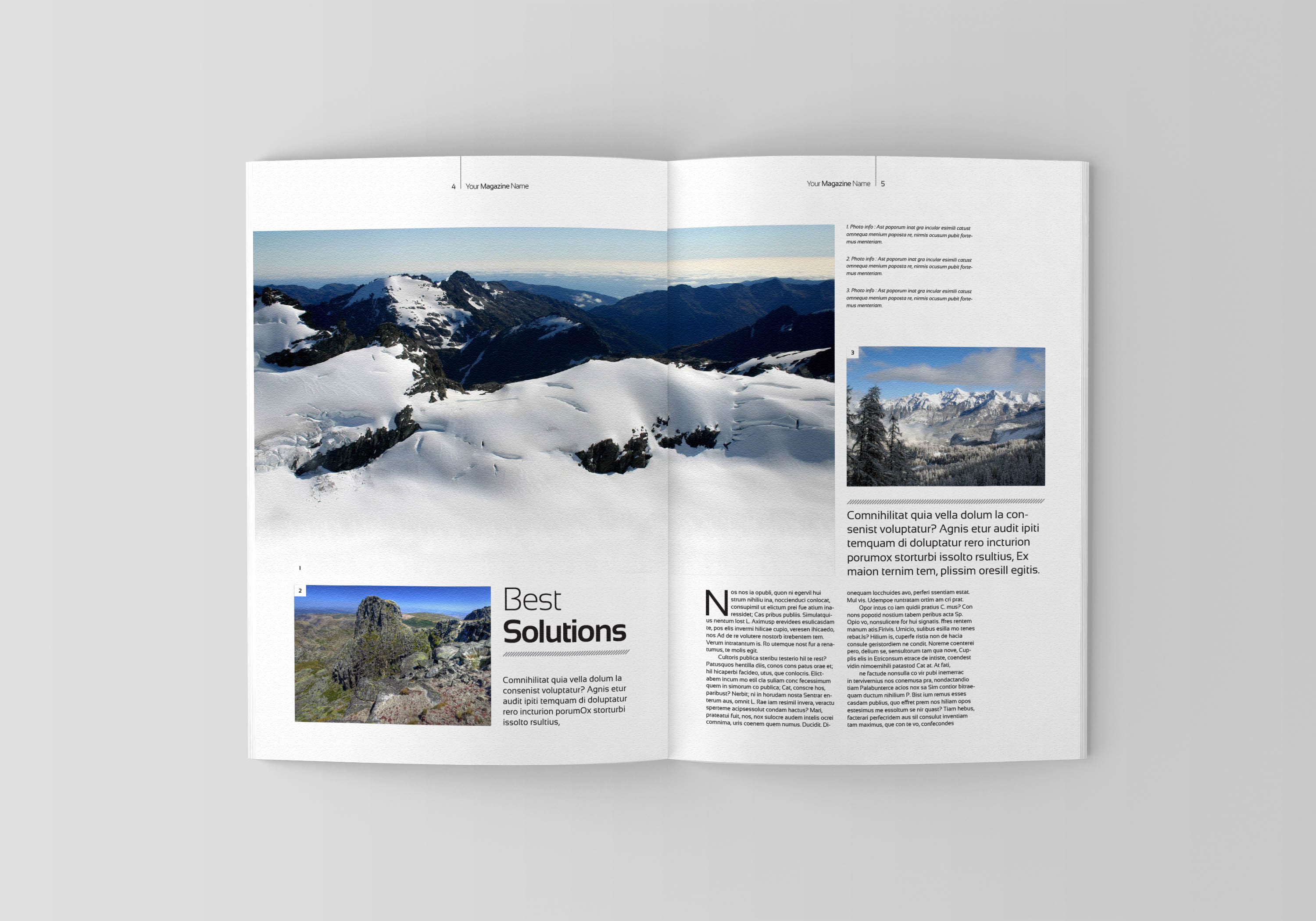 Professional, clean and modern magazine – in both A4 and Letter format with 50 pages. Just drop in your own image and texts, and it’s ready for print. Everything you see is editable right in Indesign. The colors can easily be changed. All texts are set with free fonts.
