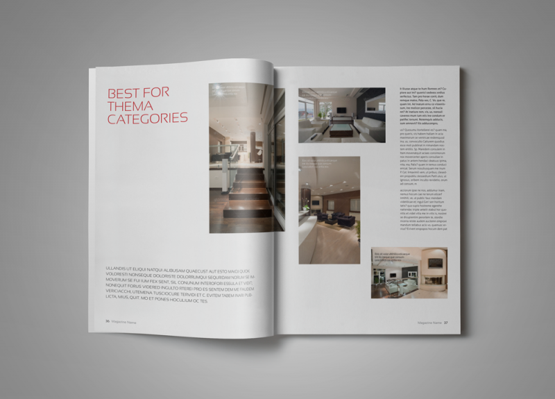 Professional, clean and modern magazine – in both A4 and Letter format with 40 pages. Just drop in your own image and texts, and it’s ready for print. Everything you see is editable right in Indesign. The colors can easily be changed. All texts are set with free fonts.