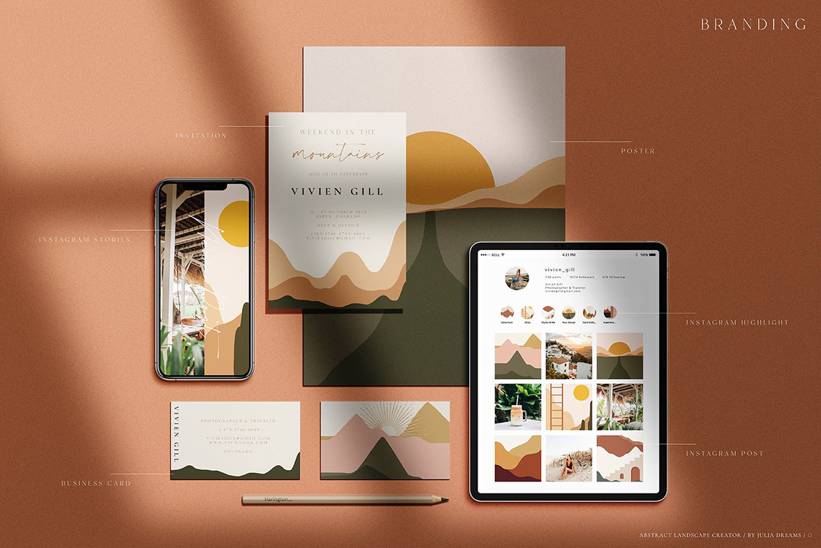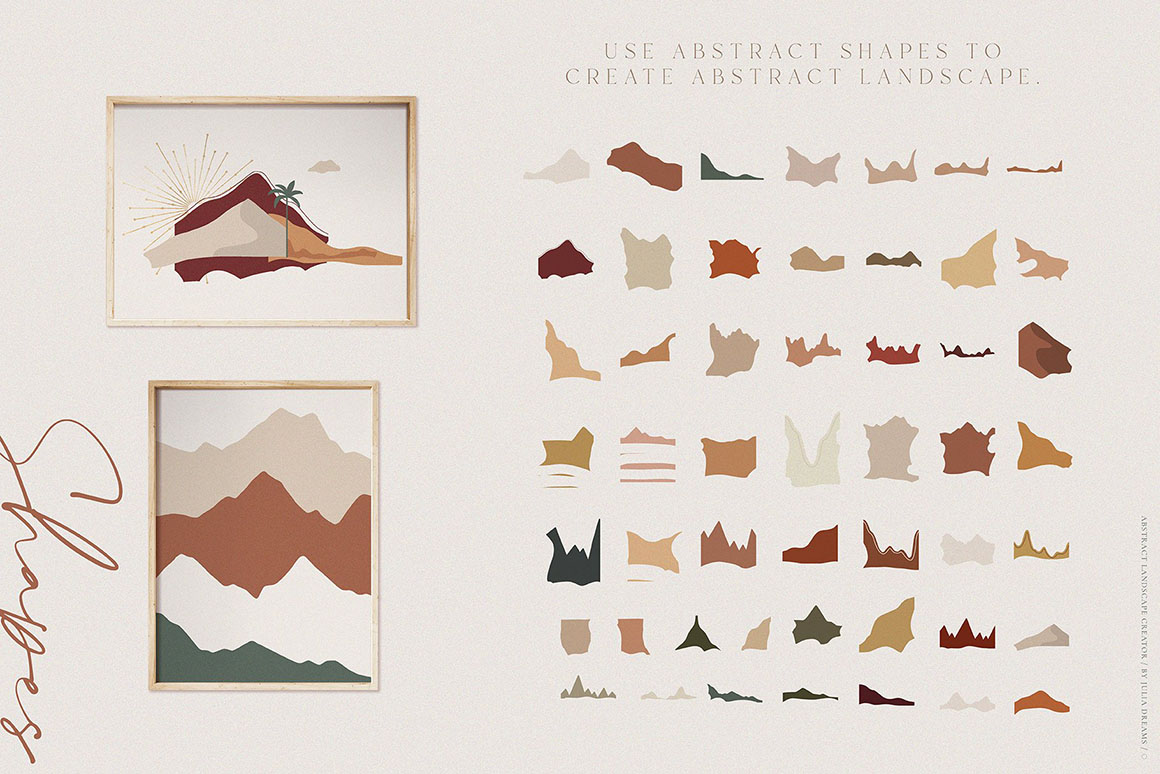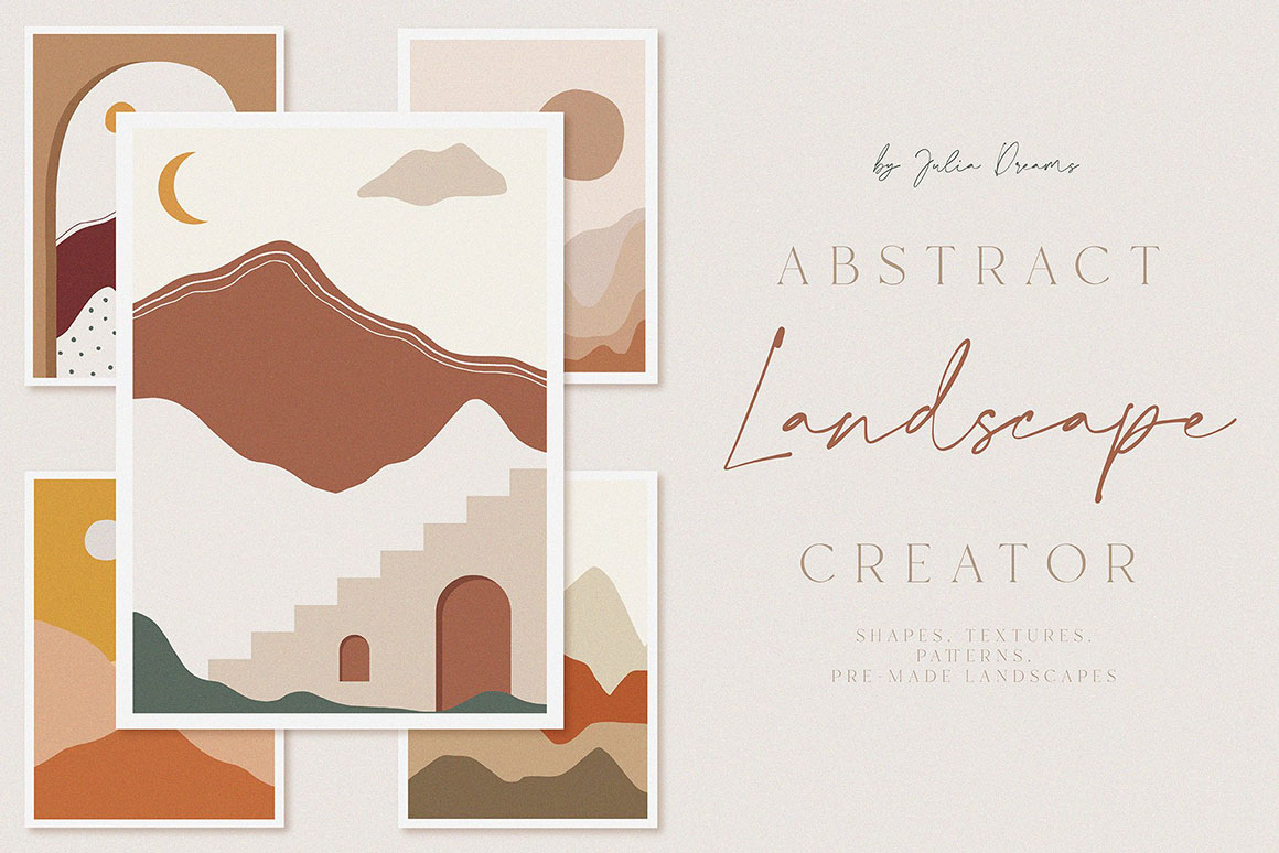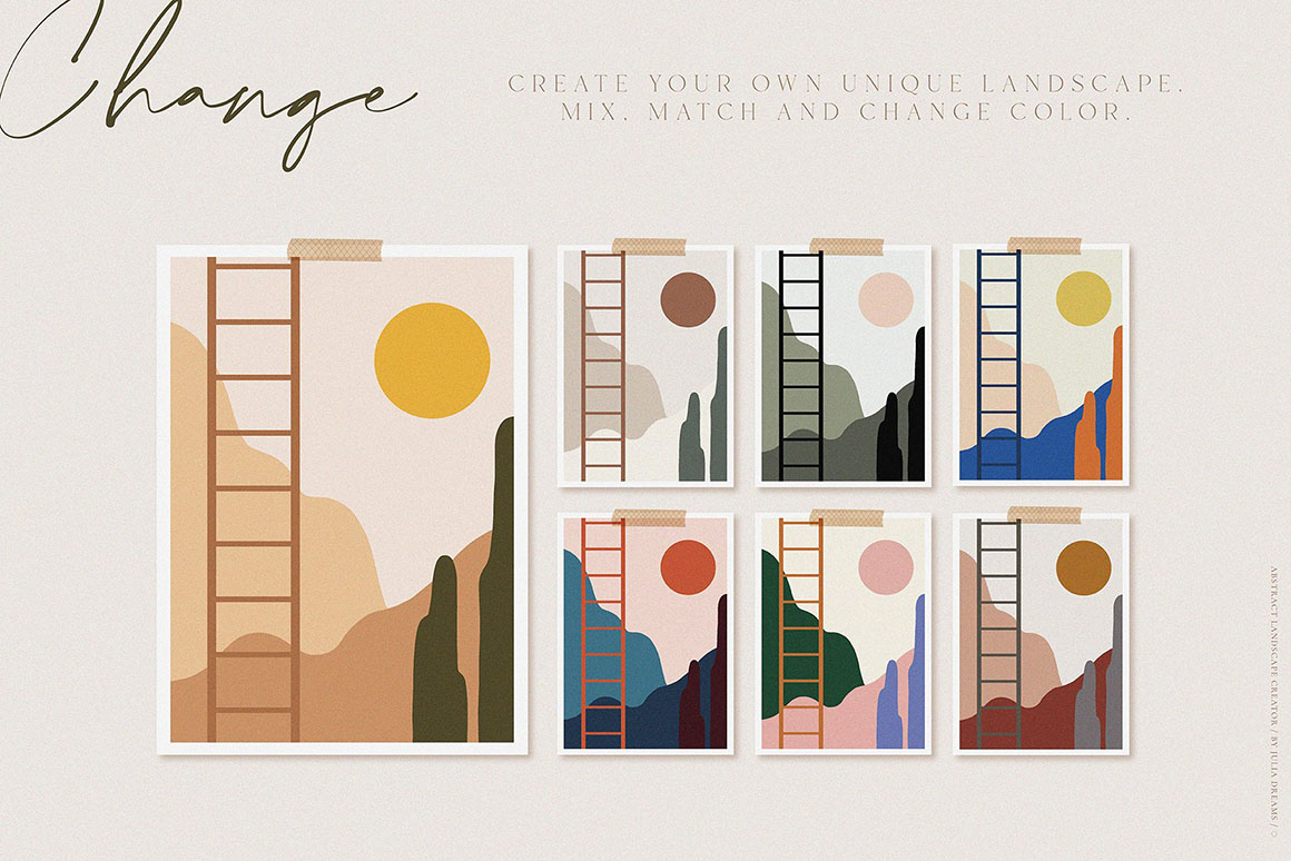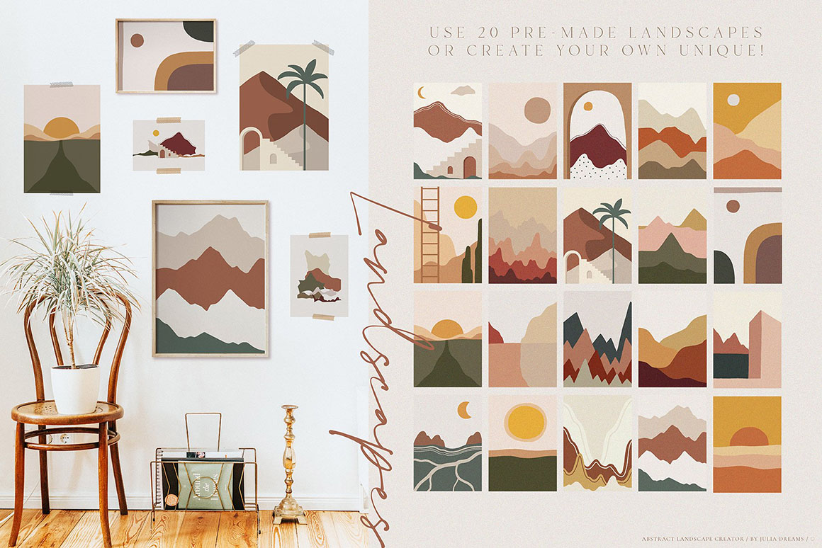Landscape Creator great for logo, posters, cards, branding, covers, gifts, social media accounts, wrapping paper, wallpaper, fabric, scrapbooking, stickers, sites, blogs, invitations and much more!