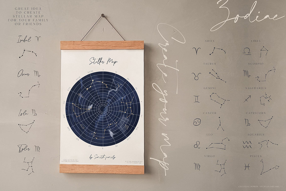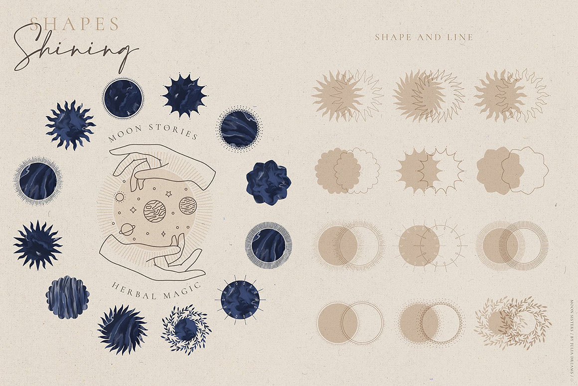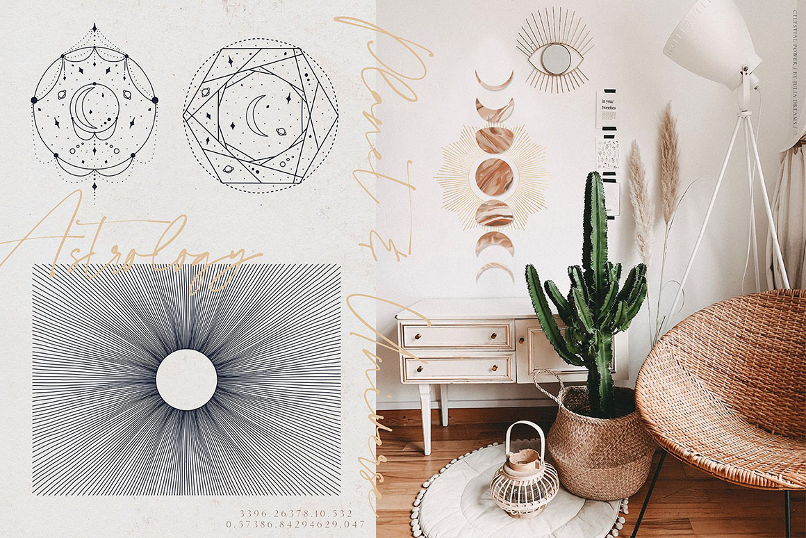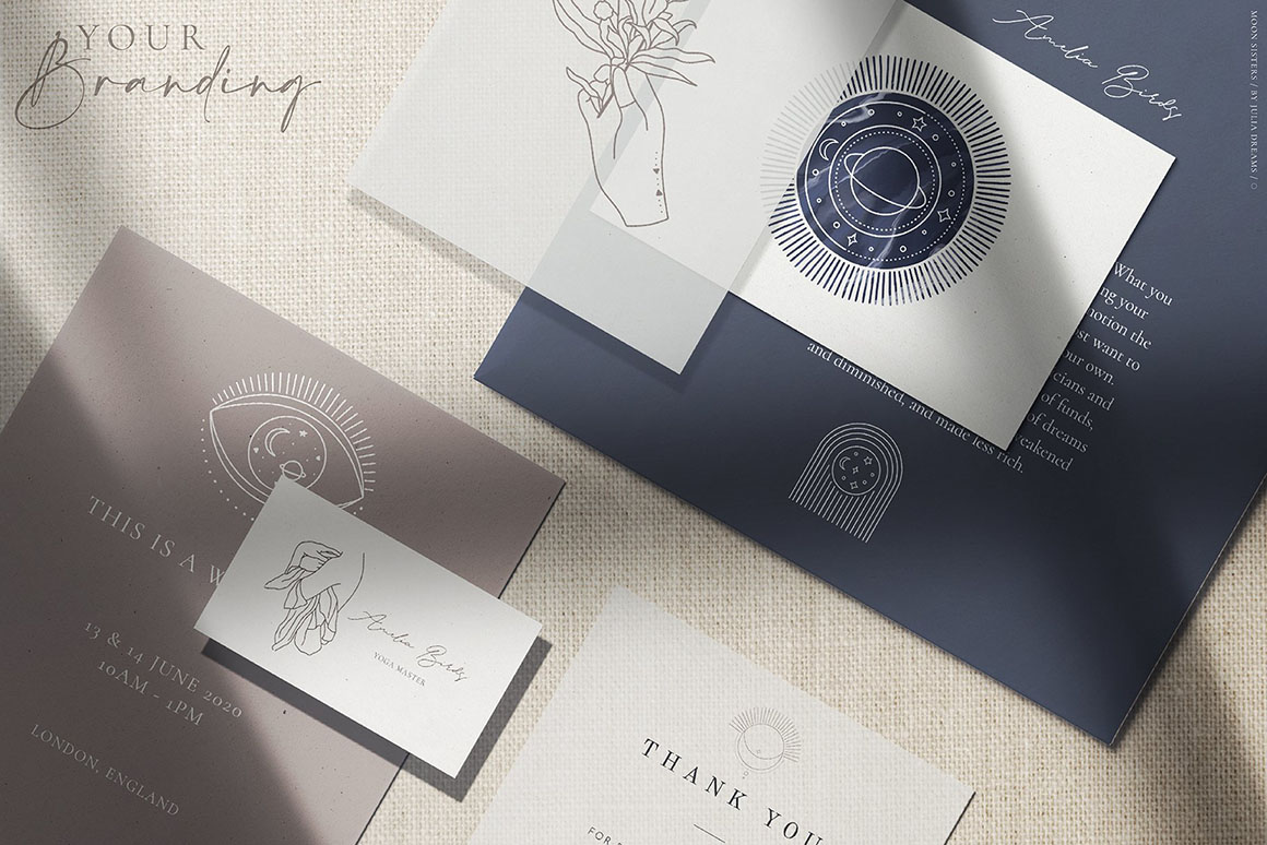 Celestial Kit great for logo, posters, cards, branding, covers, gifts, social media accounts, wrapping paper, wallpaper, fabric, scrapbooking, stickers, sites, blogs, invitations and much more!