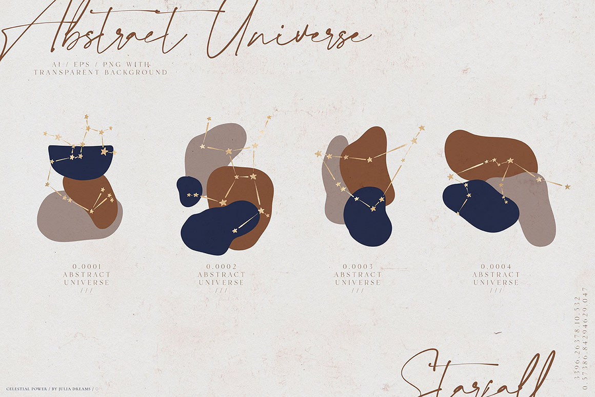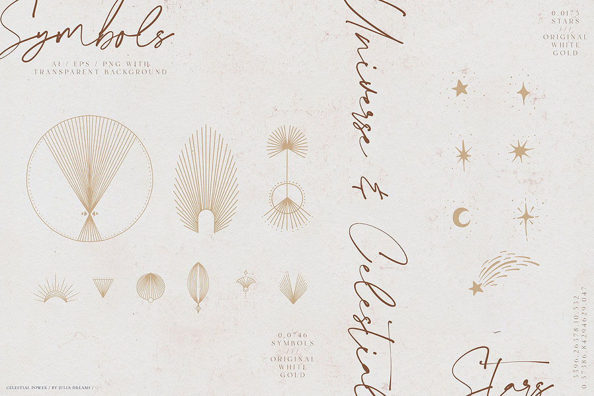- 3 Astrology & Universe – ai, eps and png [ gold, white & original] with transparent background;