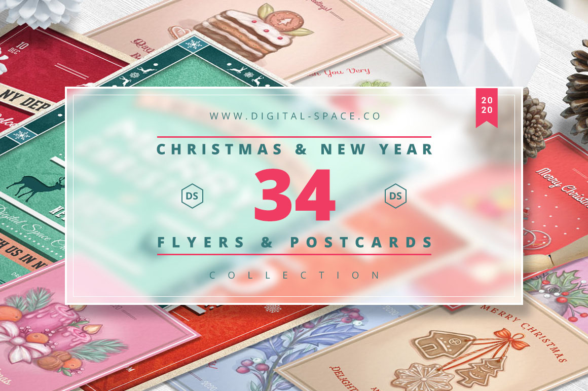 – 7 – 34 Christmas and New Year Flyers and Postcards Collection