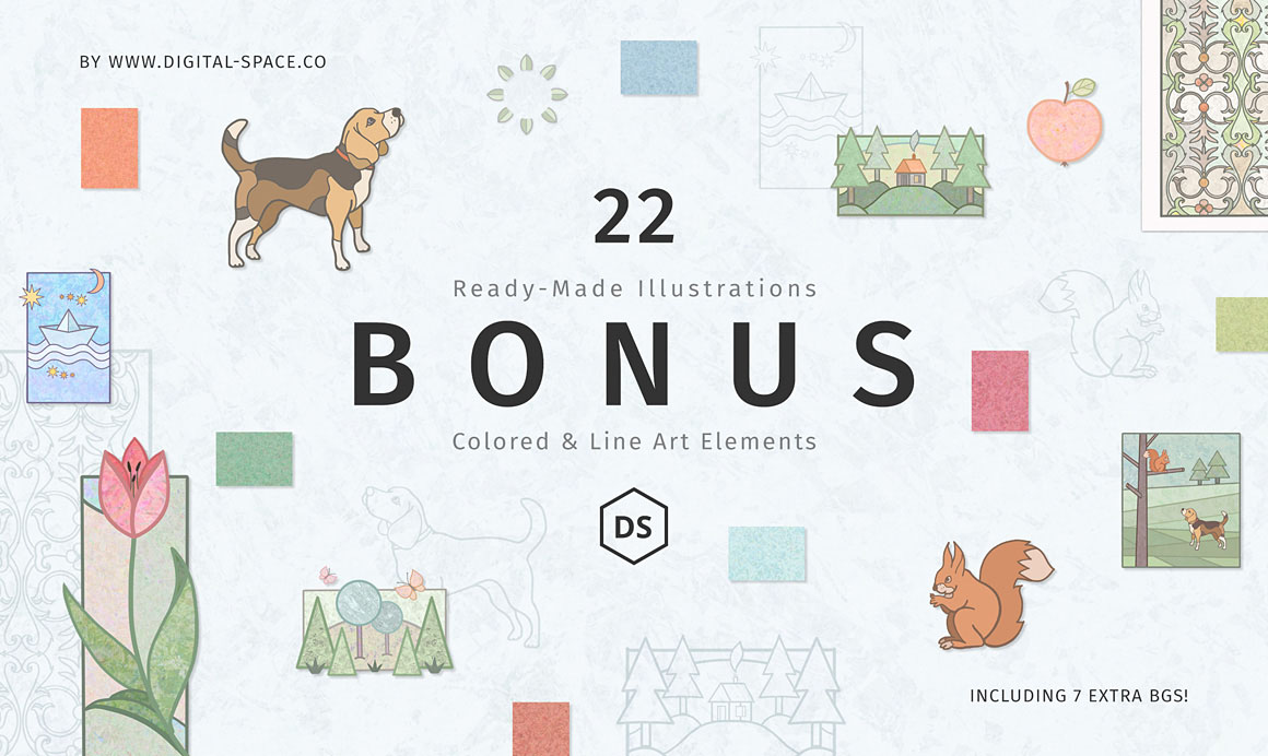 - extended license (like all of our deals): use for unlimited personal and commercial projects + you can also use them in designs/products that you sell. You can use all these items as a part of your non-digital or digital designs ( posters, t-shirt designs, stickers, web templates…). You cannot resell these files directly, or within items/goods where they can be extracted in their original form (like vector shapes, elements, fonts… – they need to be flatten into background or object in your digital item for sale). License is only for 1 person – you’ll need to buy 2 licenses if 2 persons will work with these graphics. Please read more about our exclusive license!