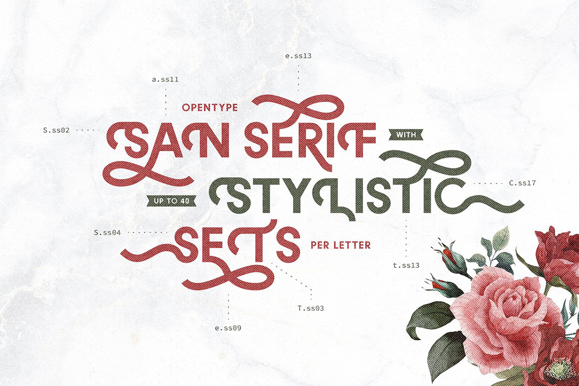 - Amazing sans serif typeface with up to 40 stylistic alternates!