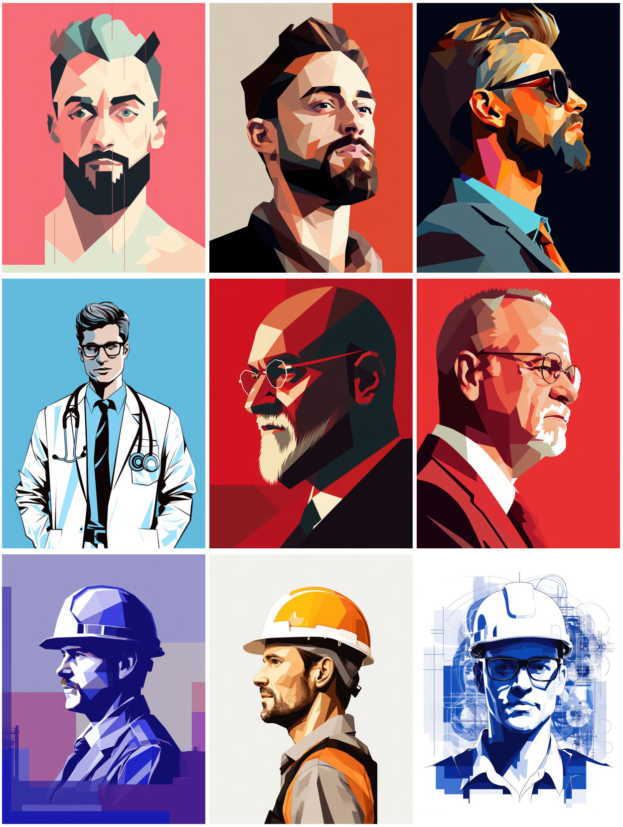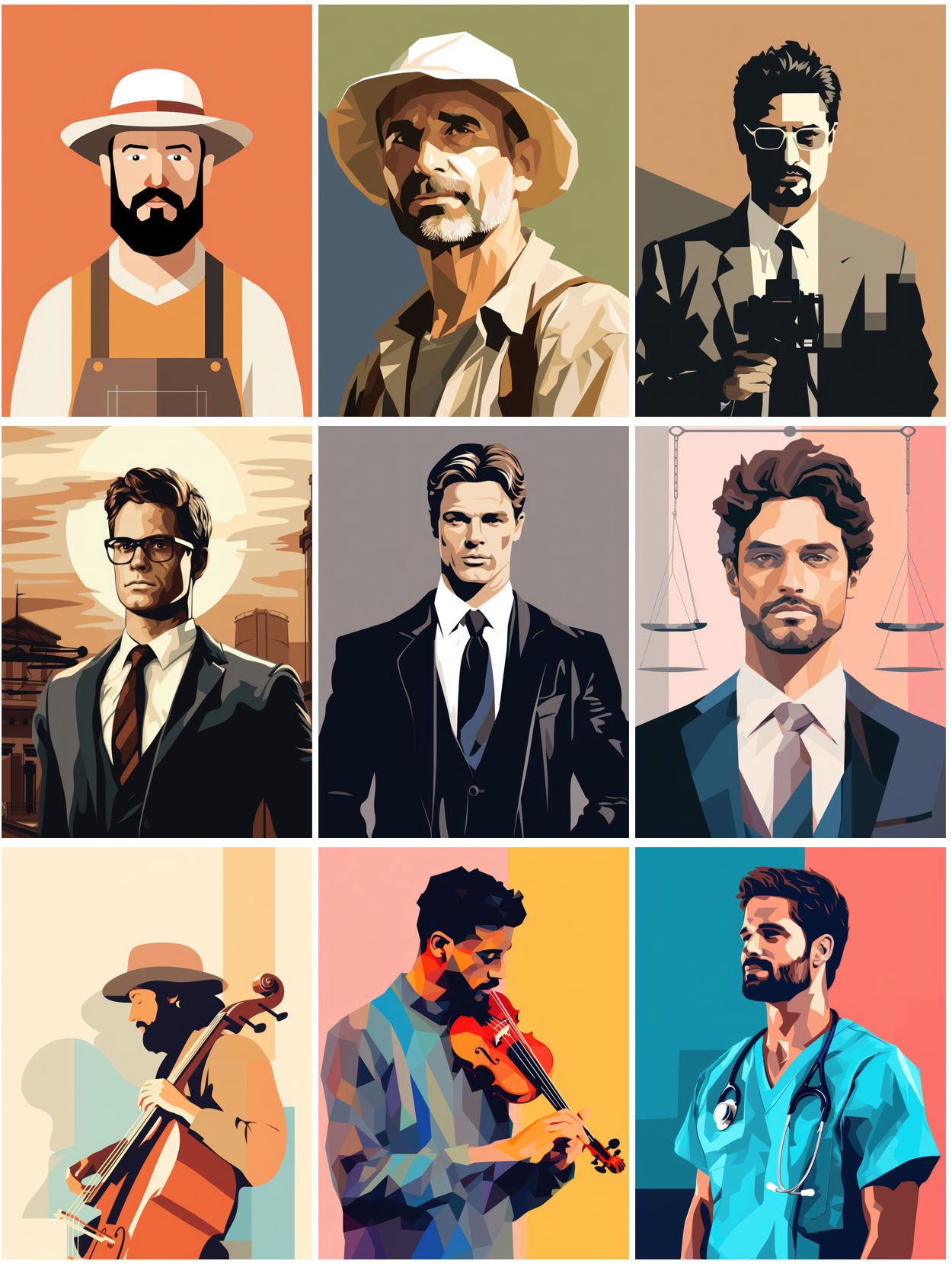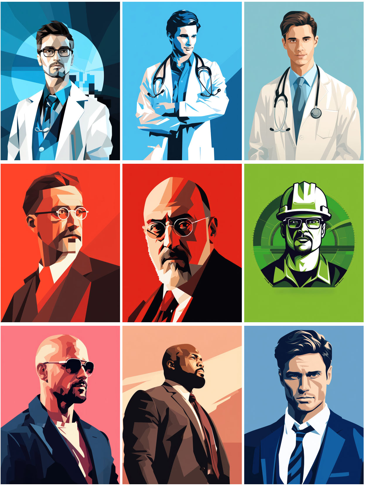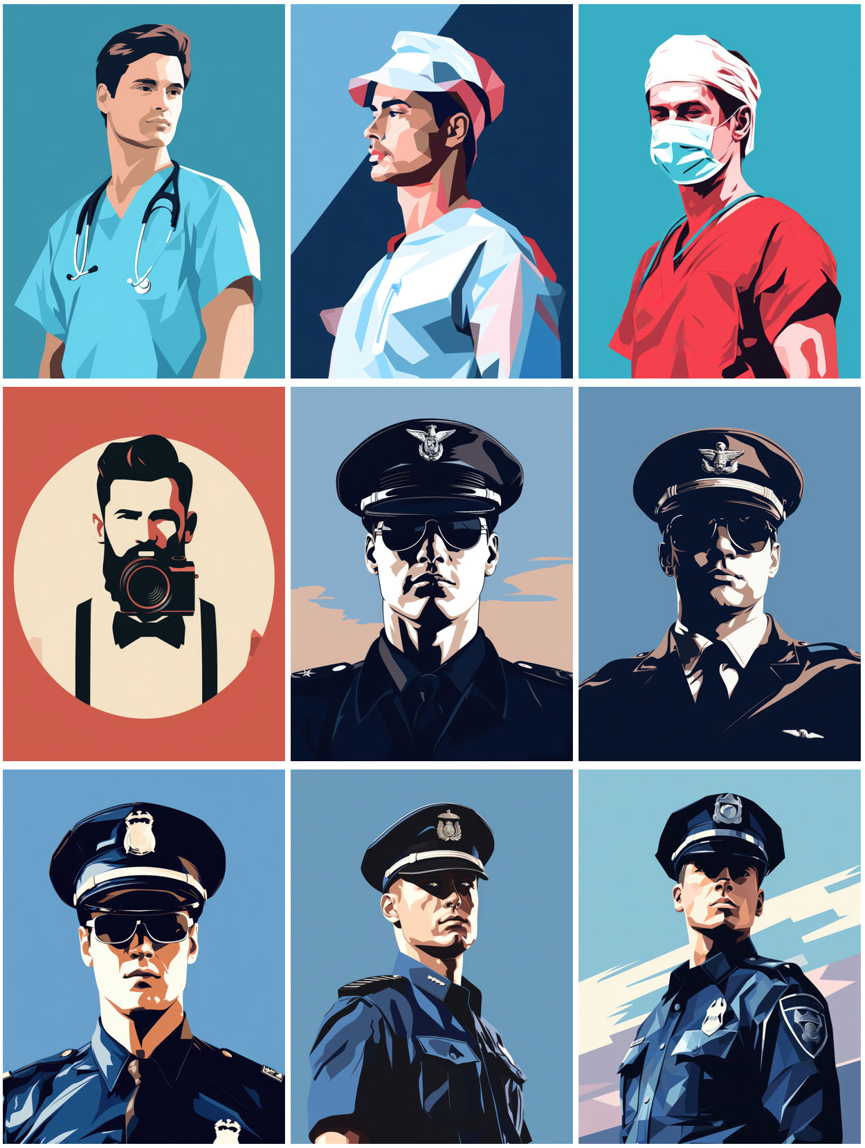 - 220 men’s & women’s profession posters or backgrounds – Ai generated digital illustrations for your new poster, card, web or print designs!
