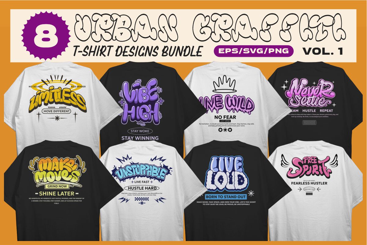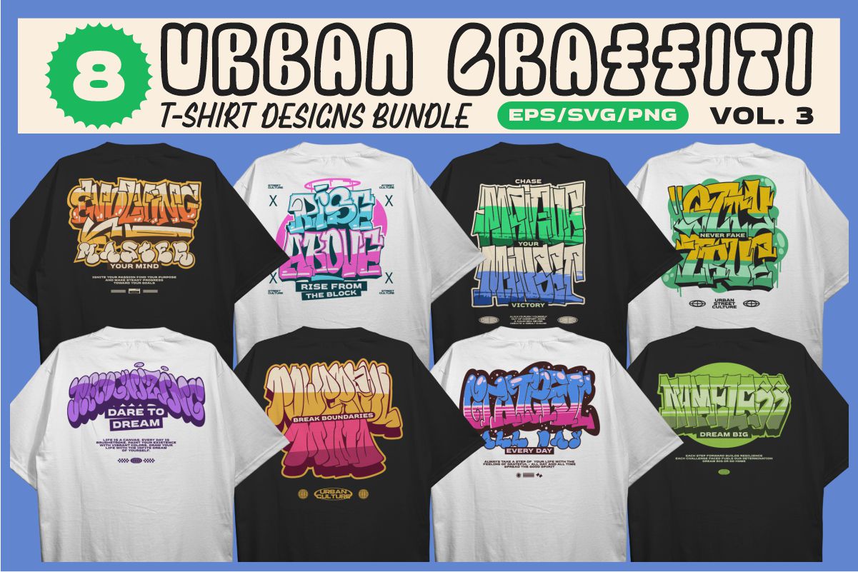 If you need something new in your PNG & vector graphics library or some cool typography designs for your new project we have a unique & T-shirt or poster graphics bundle for you 🙂 With 138 + 24 unique style typography designs you can create creative t-shirt designs, posters, stickers, invitations or other print or web designs. Start your very own t-shirt company right now with 162 ready to go t-shirt designs! This urban, street style, funny & graffiti style graphic bundle includes 162 ready-made t-shirt designs with editable texts!