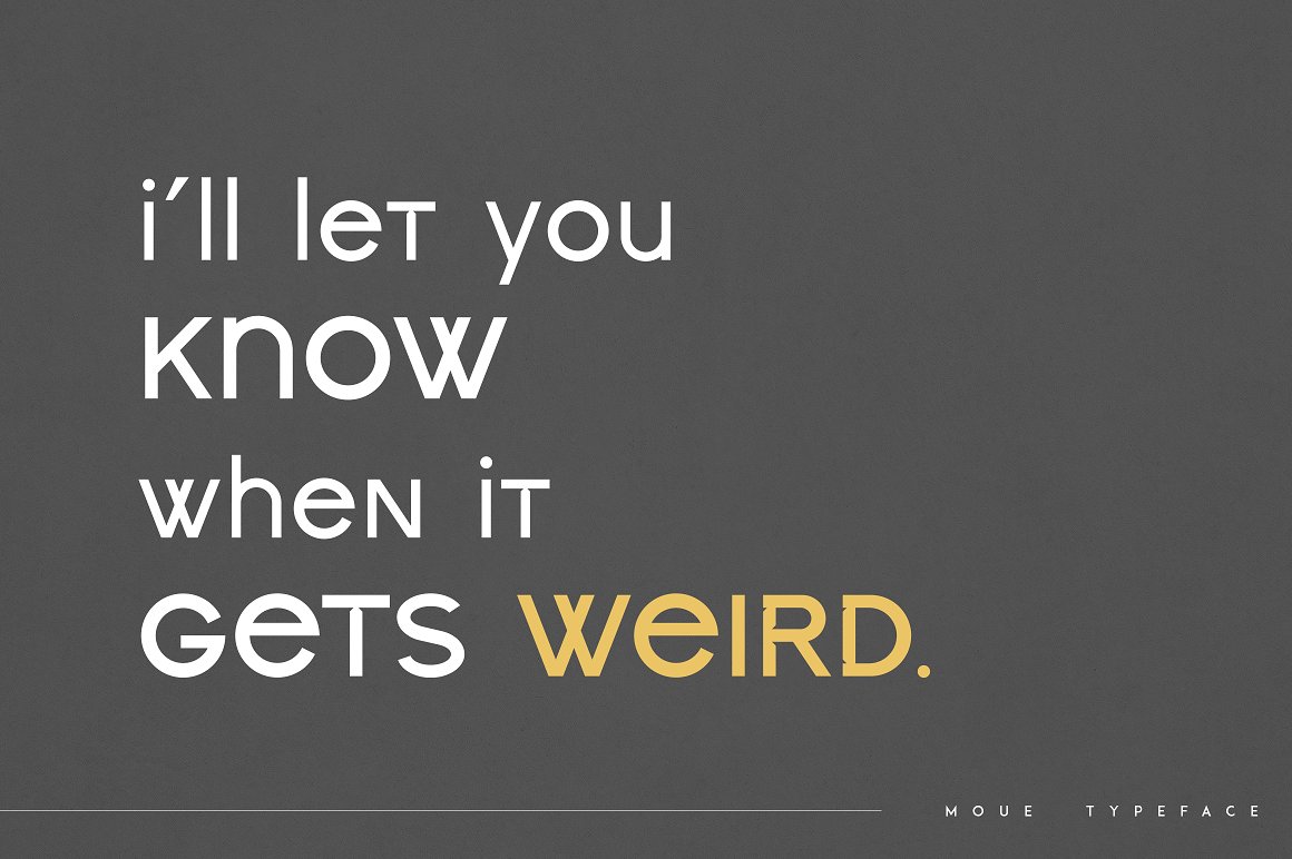 Moue is bold and weird typeface with 3 fonts and multilingual support. It’s a very versatile font that works great in large and small sizes. This font is perfect for branding projects, home-ware designs, product packaging, magazine headers – or simply as a stylish text overlay to any background image.