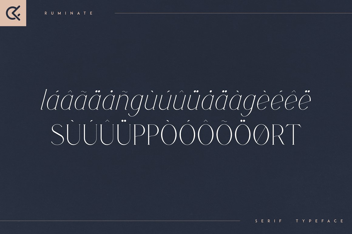 Ruminate is feminine and elegant typeface with multilingual support. It’s a very versatile font that works great in large and small sizes. This font is perfect for branding projects, home-ware designs, product packaging, magazine headers – or simply as a stylish text overlay to any background image.