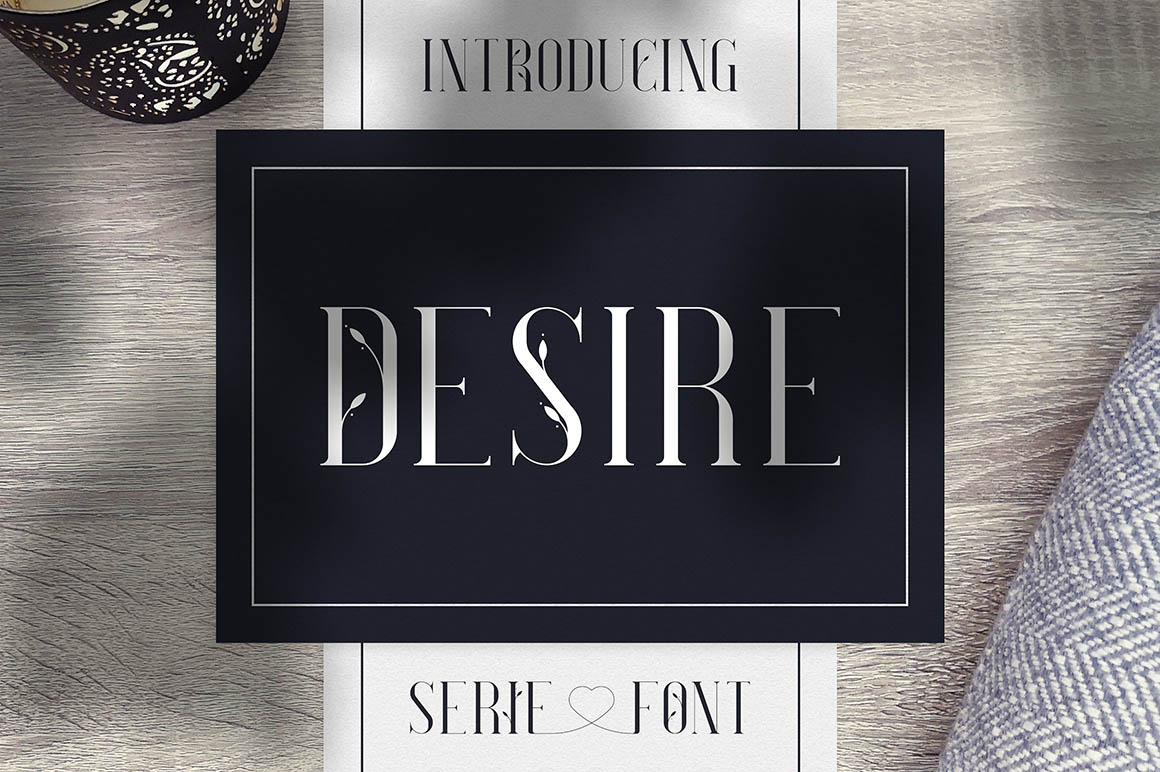 Desire is perfect for branding projects, home-ware designs, product packaging, magazine headers – or simply as a stylish text overlay to any background image.