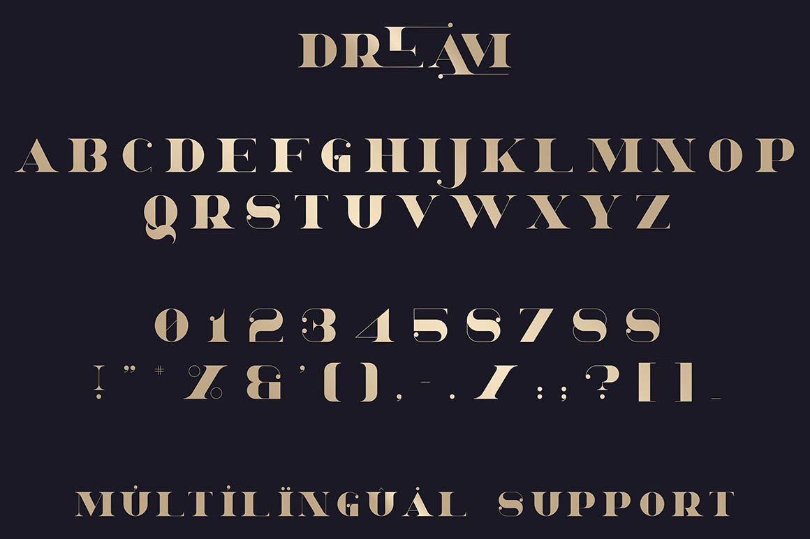 Dream is elegant, clean font with 50 ligatures and multilingual support. It’s a very versatile font that works great in large and small sizes.