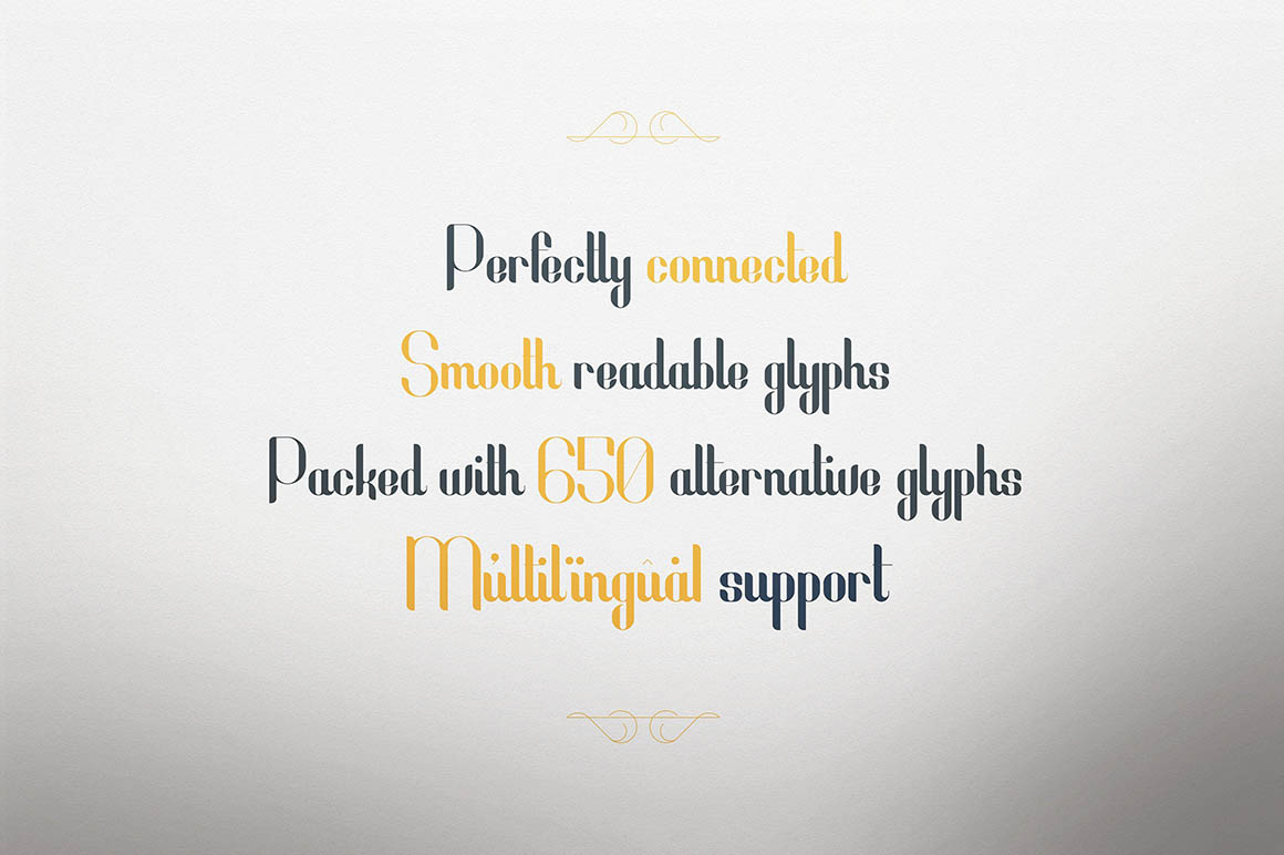 Ultimus is elegant, clean font with 52 ornaments, alternative and ligature glyphs, and multilingual support. It’s a very versatile font that works great in large and small sizes.