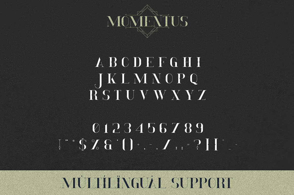 Momentus is perfect for branding projects, home-ware designs, product packaging, magazine headers – or simply as a stylish text overlay to any background image.