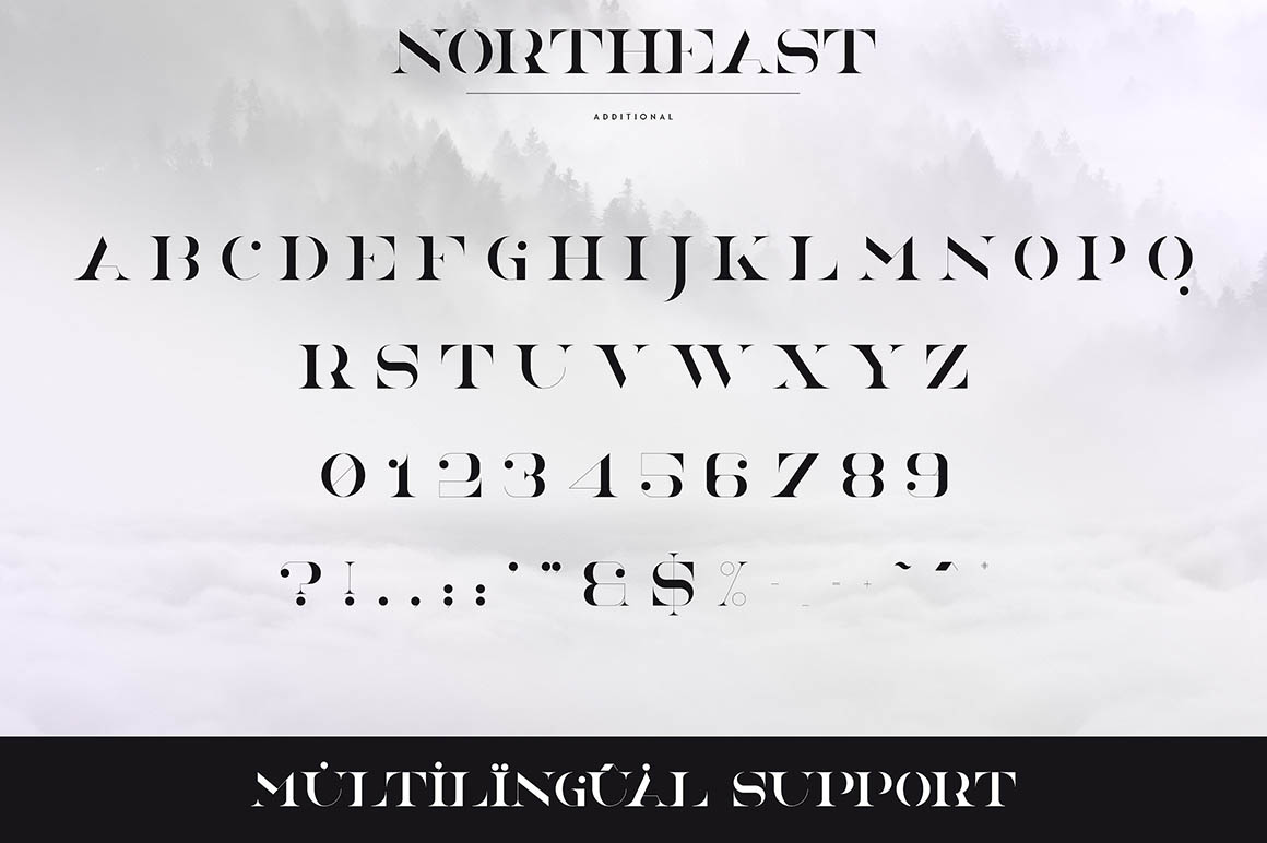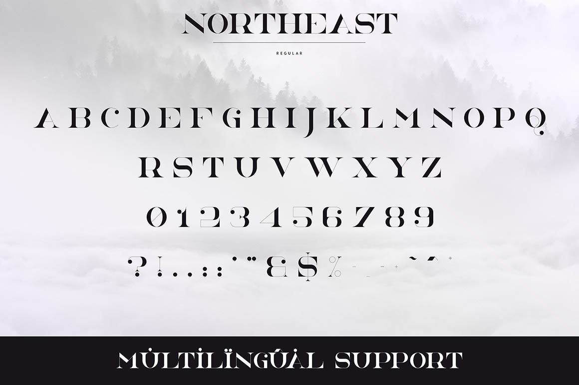 NorthEast is elegant, bold typeface with 4 fonts and multilingual support. It’s a very versatile font that works great in large and small sizes.