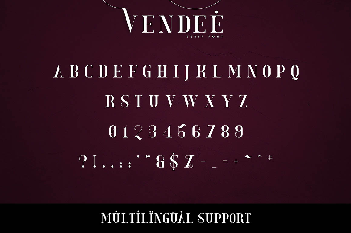 VENDEE is perfect for branding projects, home-ware designs, product packaging, magazine headers – or simply as a stylish text overlay to any background image.