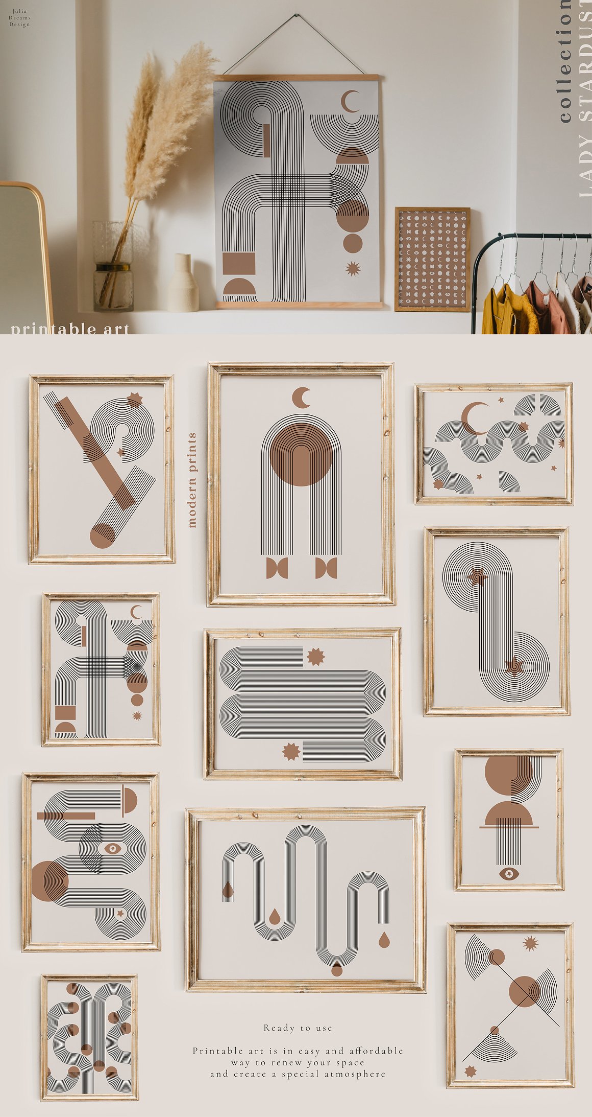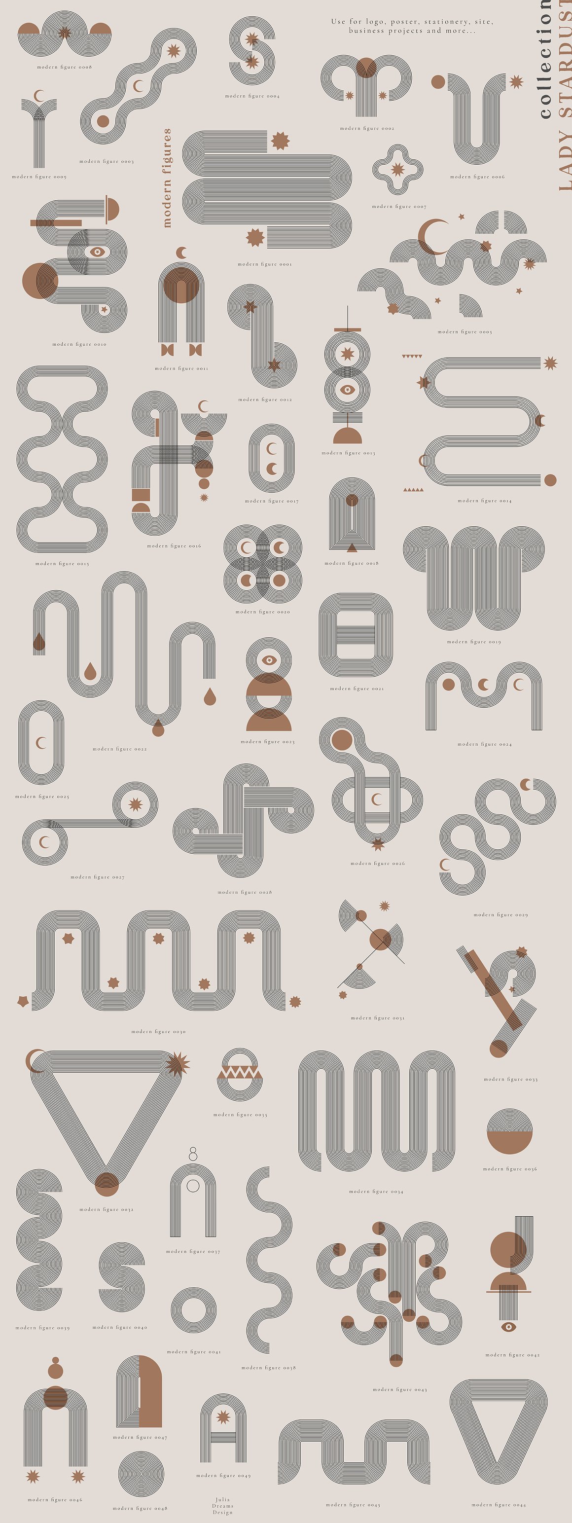 ☾ I’m so glad to introduce you my new magic collection. It’s modern figures and lines with the shapes of the sun, moon and stars. Hand painted with love elements can perfectly complement your project and help create a sophisticated, restrained and fashionable style. All these elements can make a special atmosphere in your project: from wedding to stationery branding, from logo to posters and postcards. ✦ This collection was carefully crafted and great attention was paid to details. It consists of different pre-made elements, seamless patterns, instagram highlights that can be used individually or combined with other elements. Use ready-to-use printable art and patterns or create your own individual logo using all these elements.
