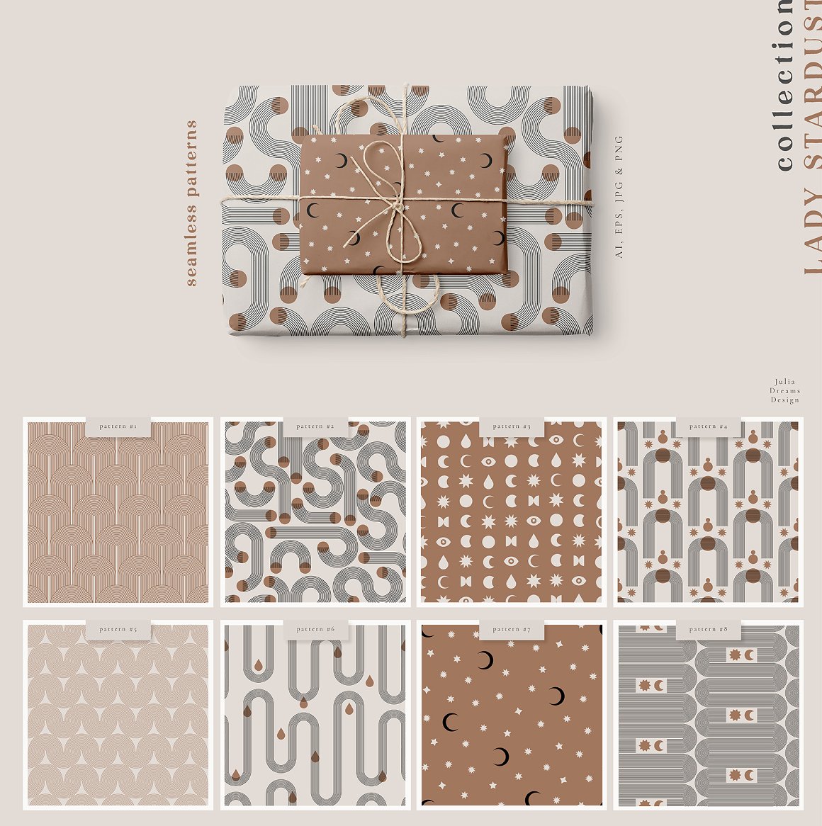 - 8 Seamless Patterns – ai, eps, jpg and png with transparent background;