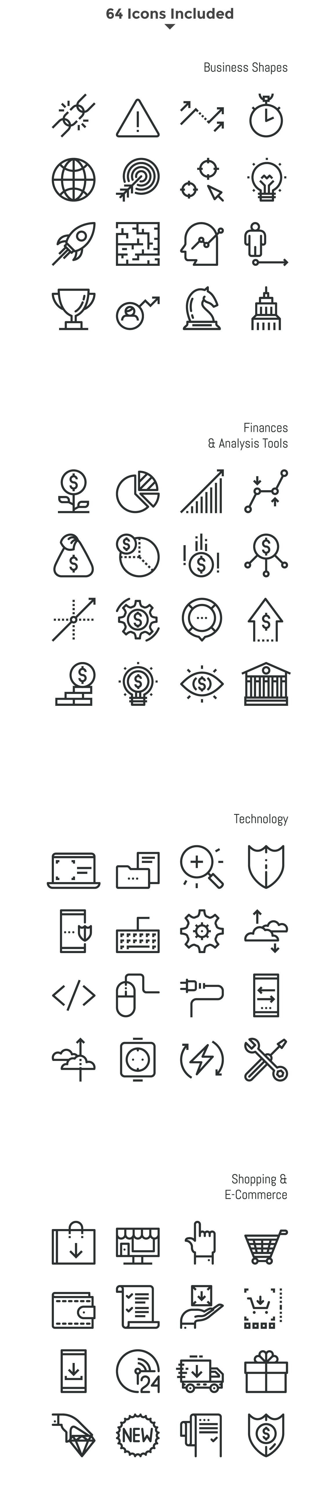 - 100 Pixel Perfect Line icons based on 64x pixel grid: -AI, EPS with expanded strokes -AI, EPS CS with editable strokes -PSD -JPG -PNG without background for each icon (64x, 128x, 256x, 512x)