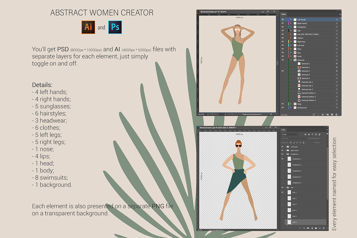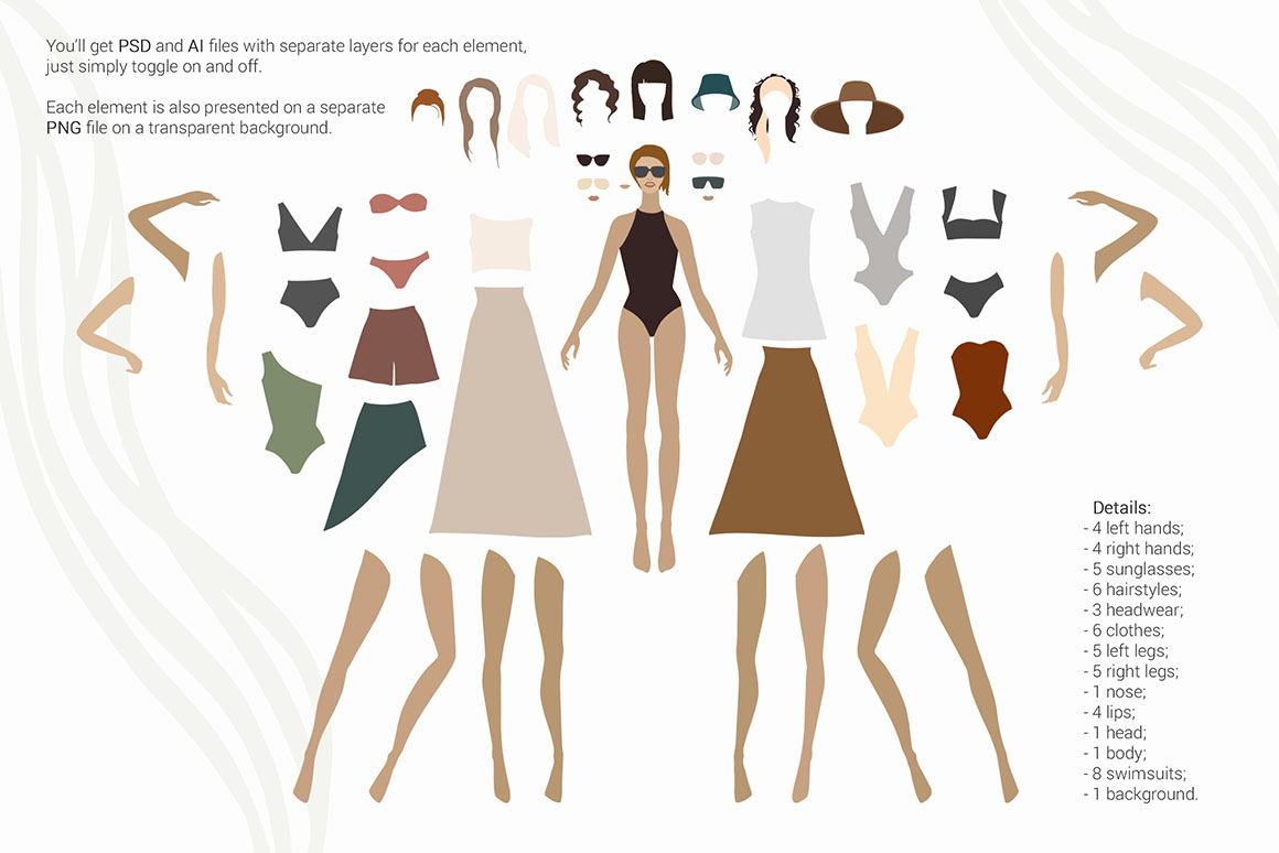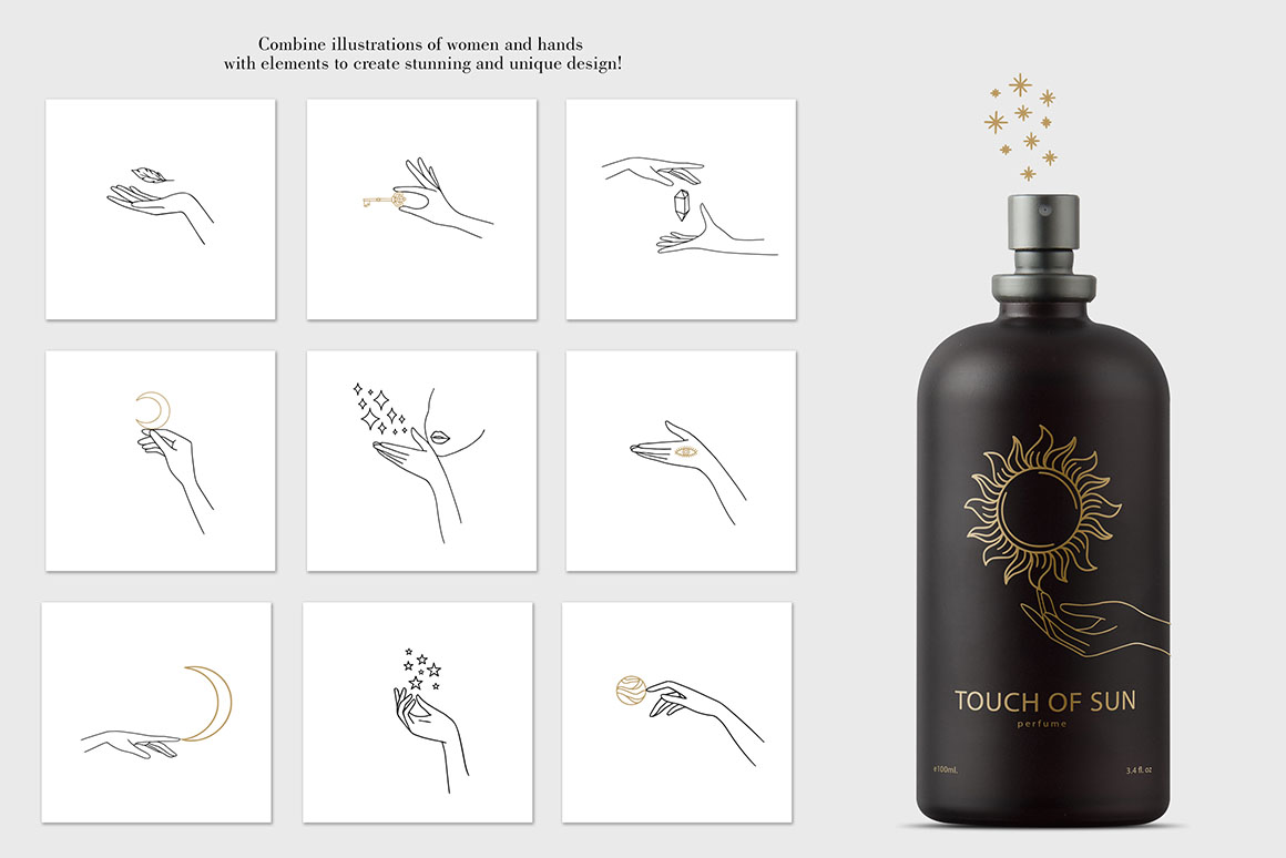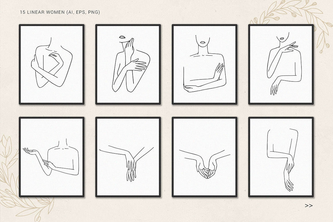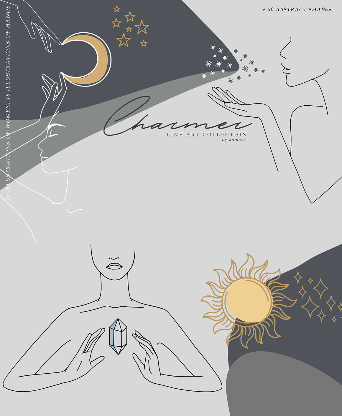 This Line Art BUNDLE is packed with over 1700 items from 10 graphic collection (one of them is Abstract women CREATOR). Female silhouettes, fashion elements, accessories, floral elements, one-line graphics, abstract shapes, female, male and children’s hands and much more. This BUNDLE is perfect for logo, posters, wall art, branding, packaging, wedding decor, magazines, book cover, cosmetic business, social media, greeting cards, flyer, banner, web header, collages, scrapbooking, craft and DIY projects, blogs, postcard and many more. In addition to PNG files, each collection includes a vector format (AI and EPS).