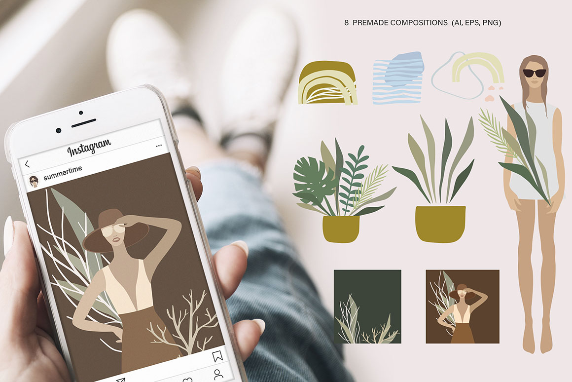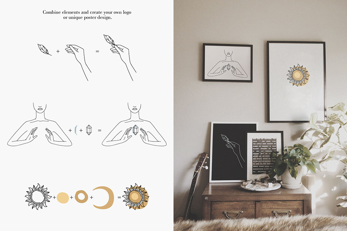 10 line art graphics or illustration toolkits with modern & fashion style!