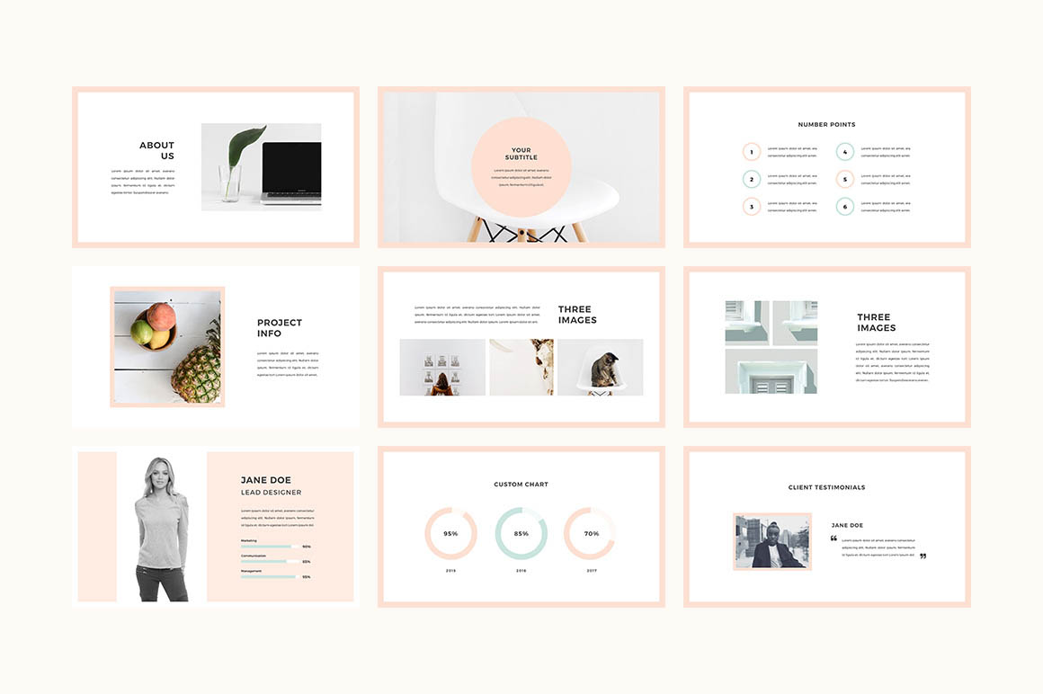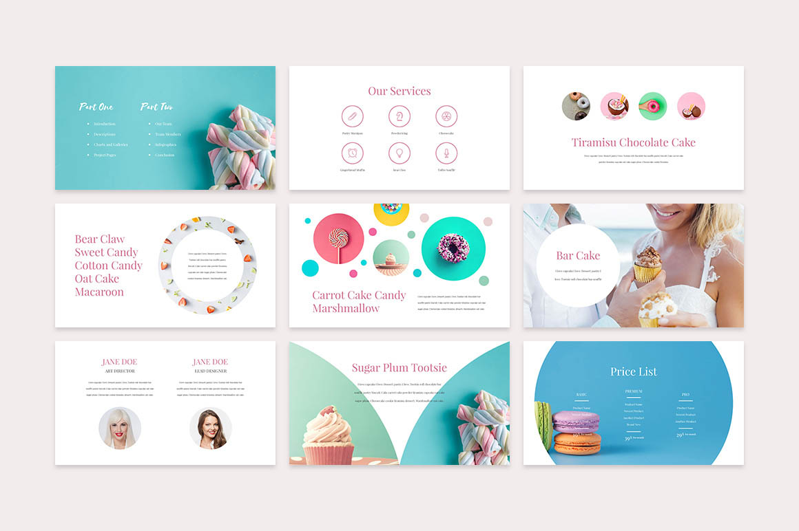 CupCake is a personable, creative and clean presentation template for both PowerPoint and Keynote. Click on the thumbnails to see all the slides.