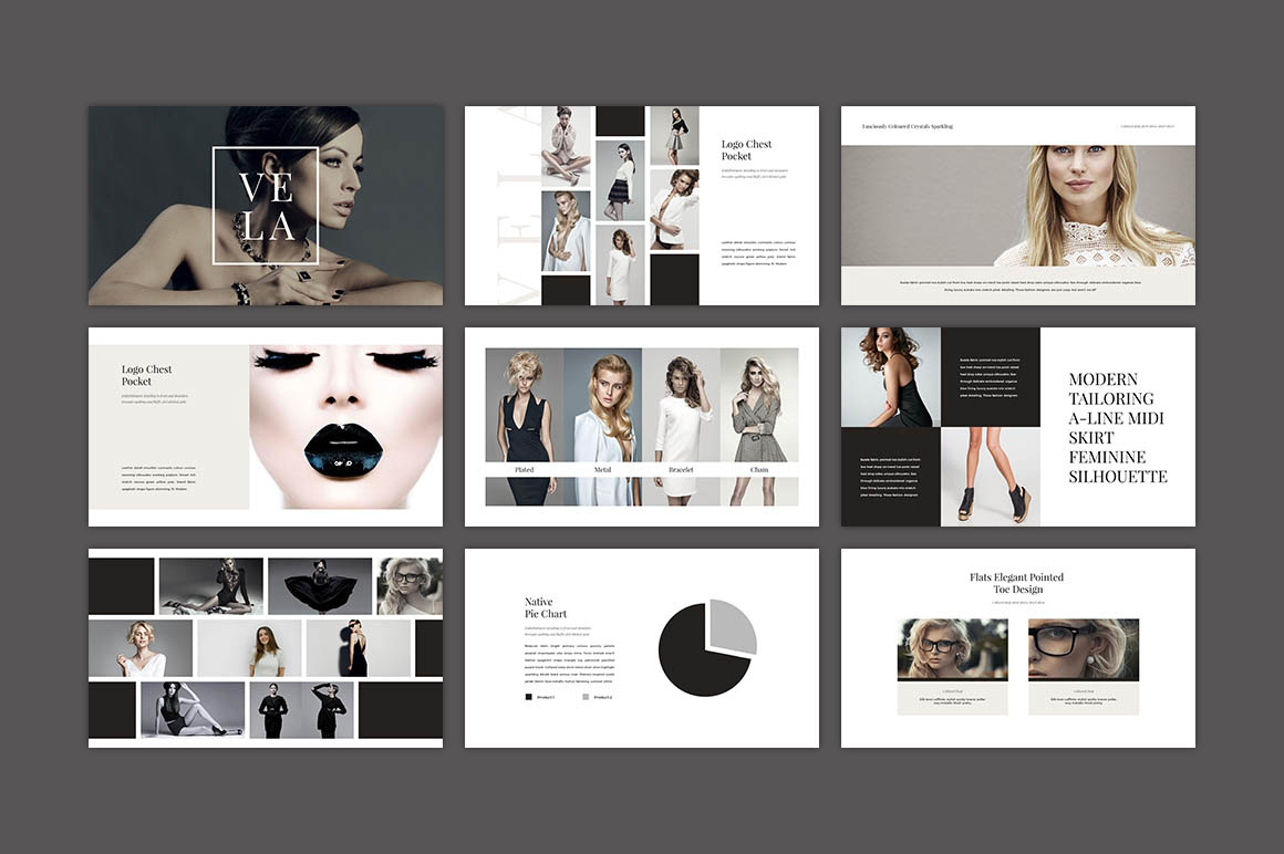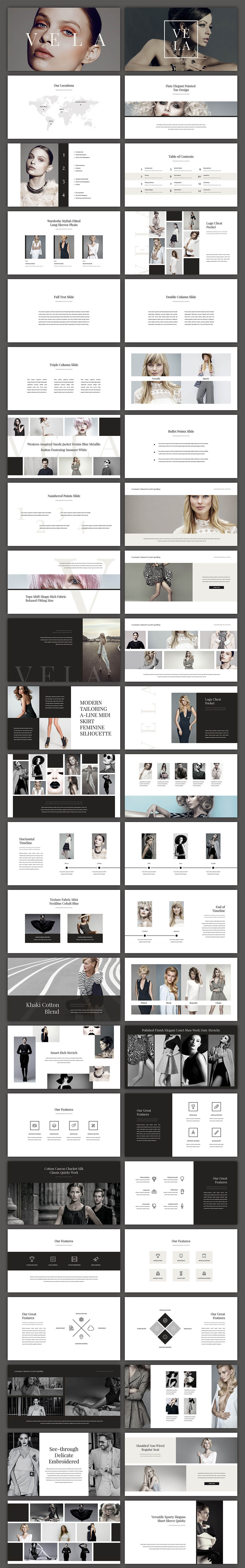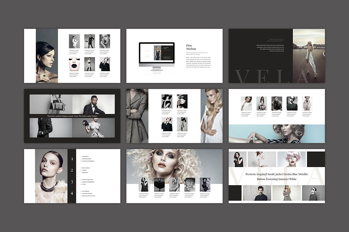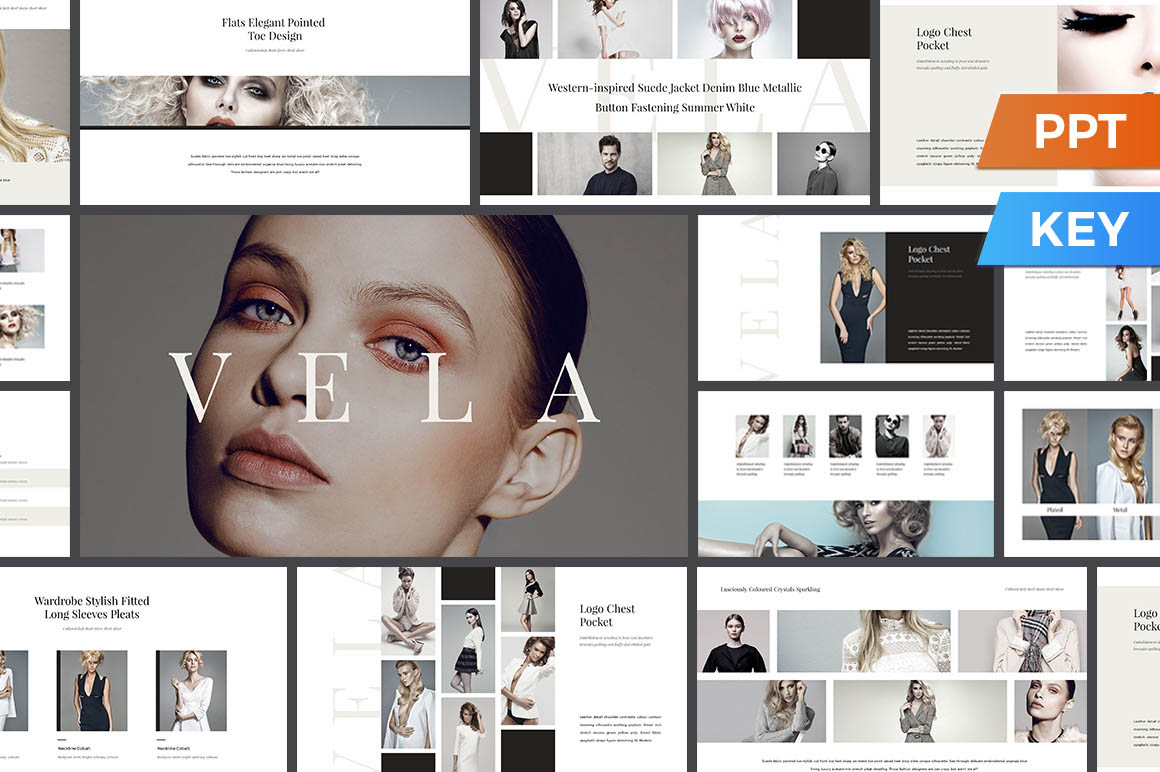 Vela is an elegant, simple and impressive presentation template for both PowerPoint and Keynote. It is prepared with a strong fashion theme but thanks to its high functionality and easily editable structure you can use Vela for any field you like. Click on the thumbnails to see all the slides.