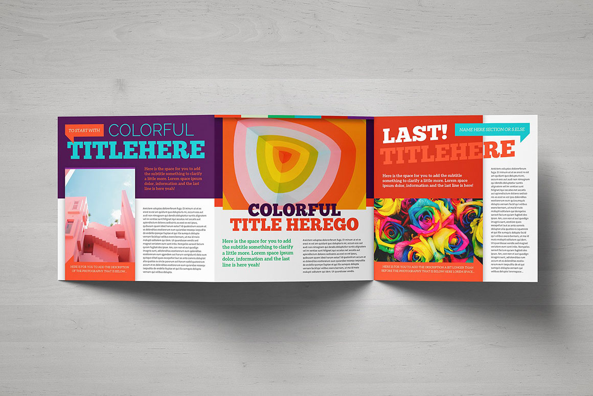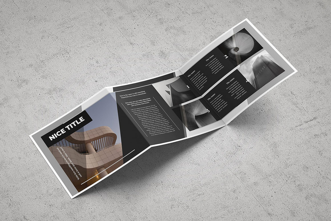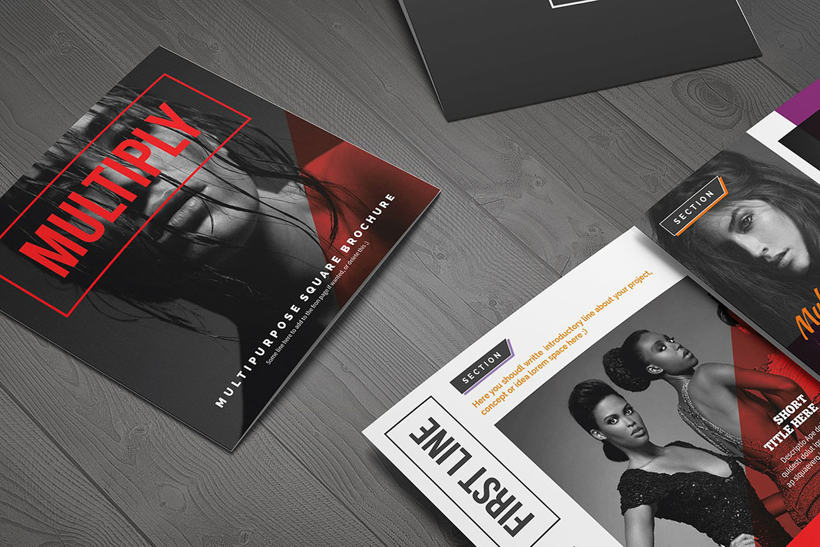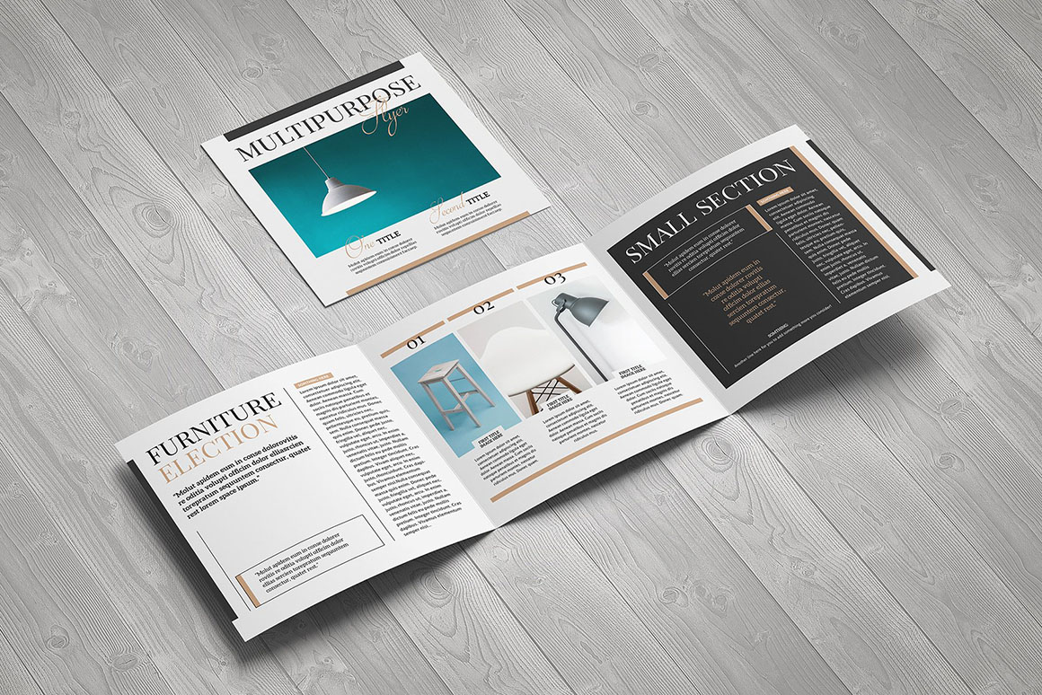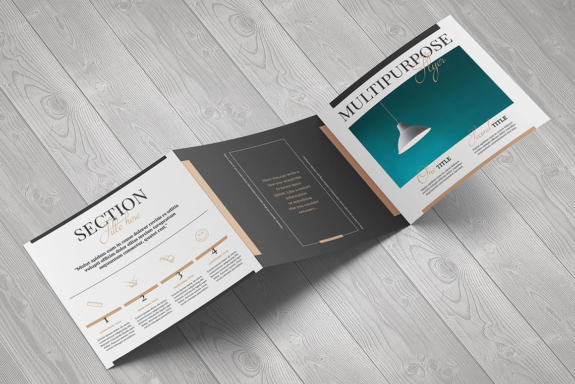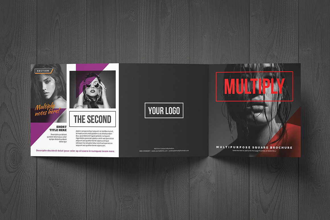 Square brochure trifold for multiple purposes. Very easy to adapt and customize.