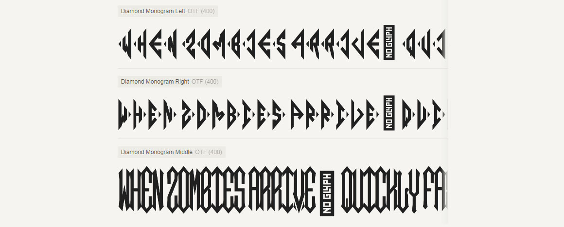 Cool creator with three typefaces – you can create a 2 or 3 letter monograms with full basic latin set with numerals and middle ampersand. Also you get set of 17 Diamond decorate frames in Ai (CS2 or higher) and HQ PNG. Easy solution to get simple XX mid-century sans monogram. Some letter has two different style (lowercase and uppercase). It couldn’t be simpler to use, just type your letters with the font and choose your favourite border to complete the monogram.
