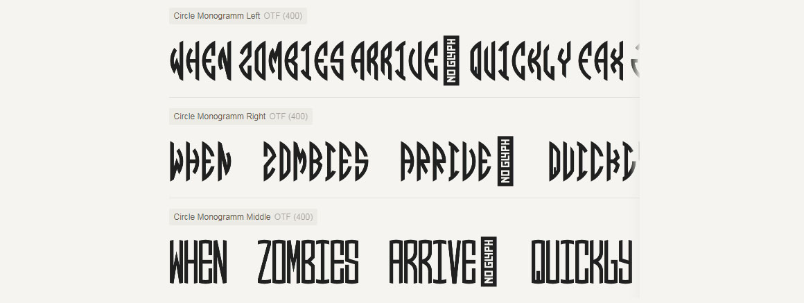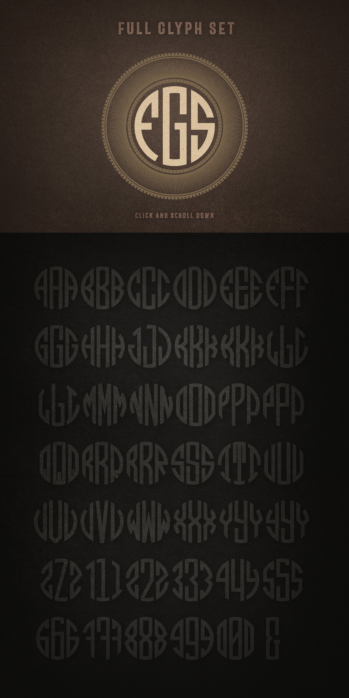 Cool creator with three typefaces – you can create a 2 or 3 letter monograms with full basic latin set with numerals and middle ampersand. Also you get set of 28 Circle decorate borders in Ai and PNG. Easy solution to get simple XX mid-century sans monogram. Some letters has two different style (lowercase and uppercase). It couldn’t be simpler to use, just type your letters with the font and choose your favourite border to complete the monogram.