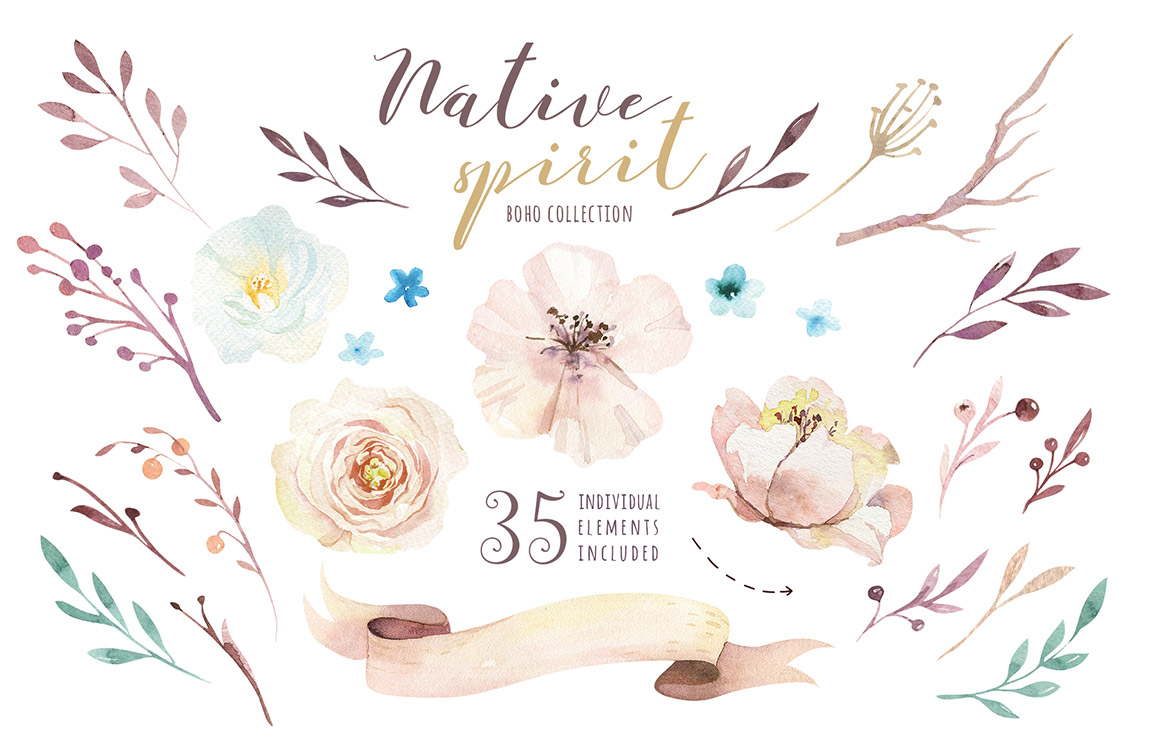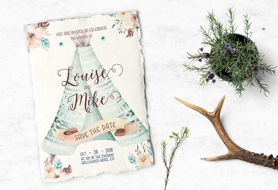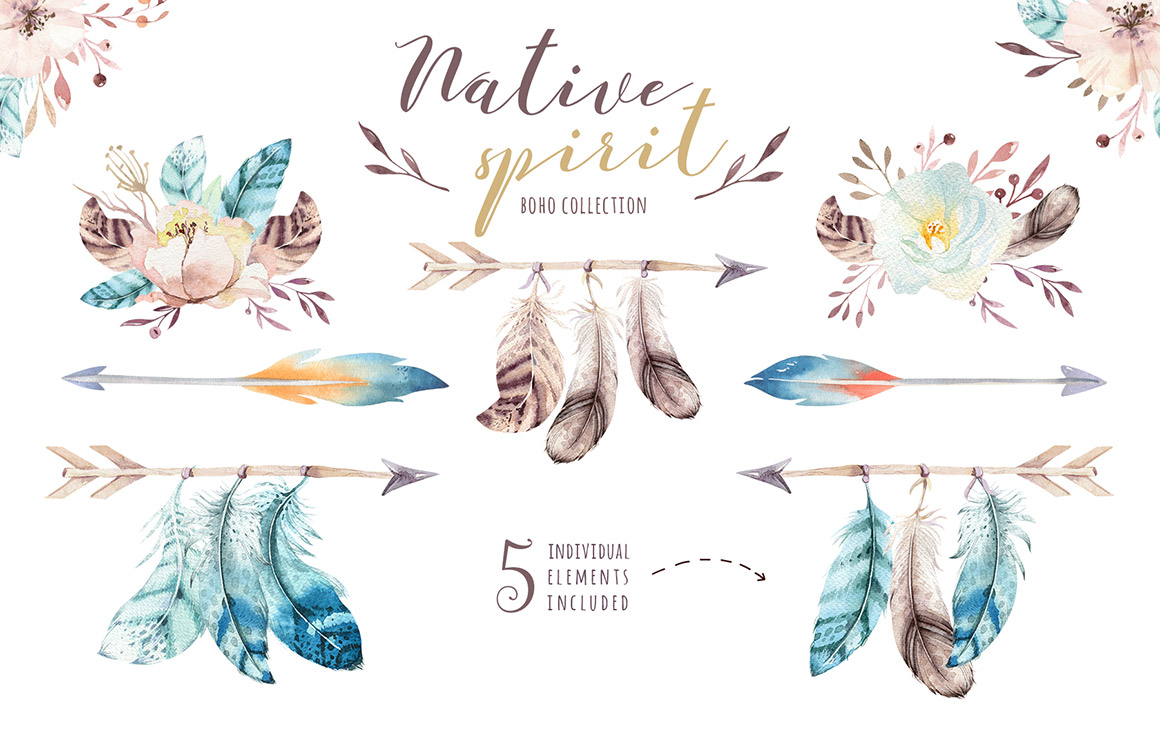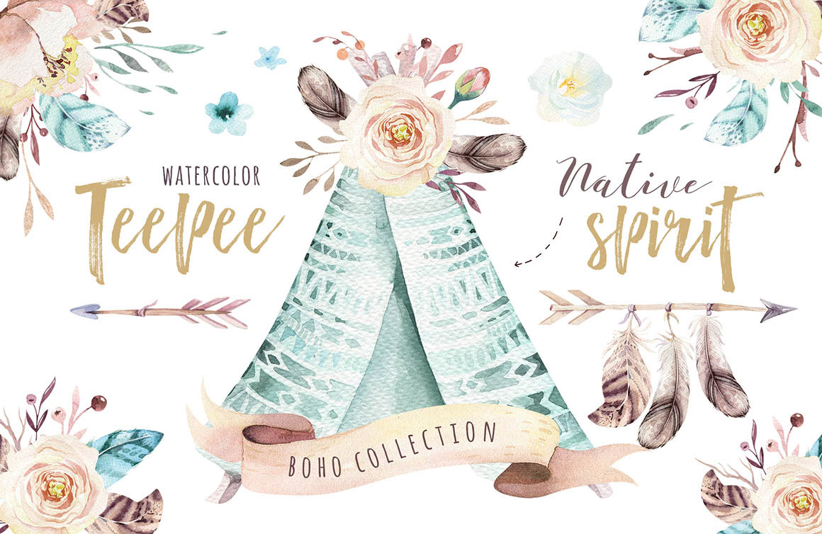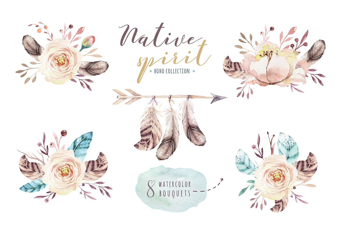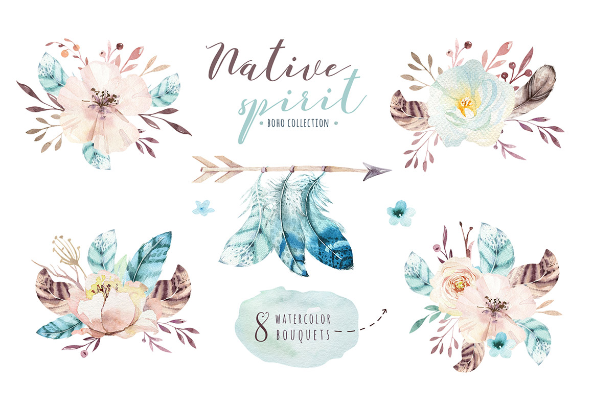 This set of high quality hand painted boho watercolors. Perfect graphic for DIY, wedding invitations, greeting cards, quotes, blogs, posters and more.