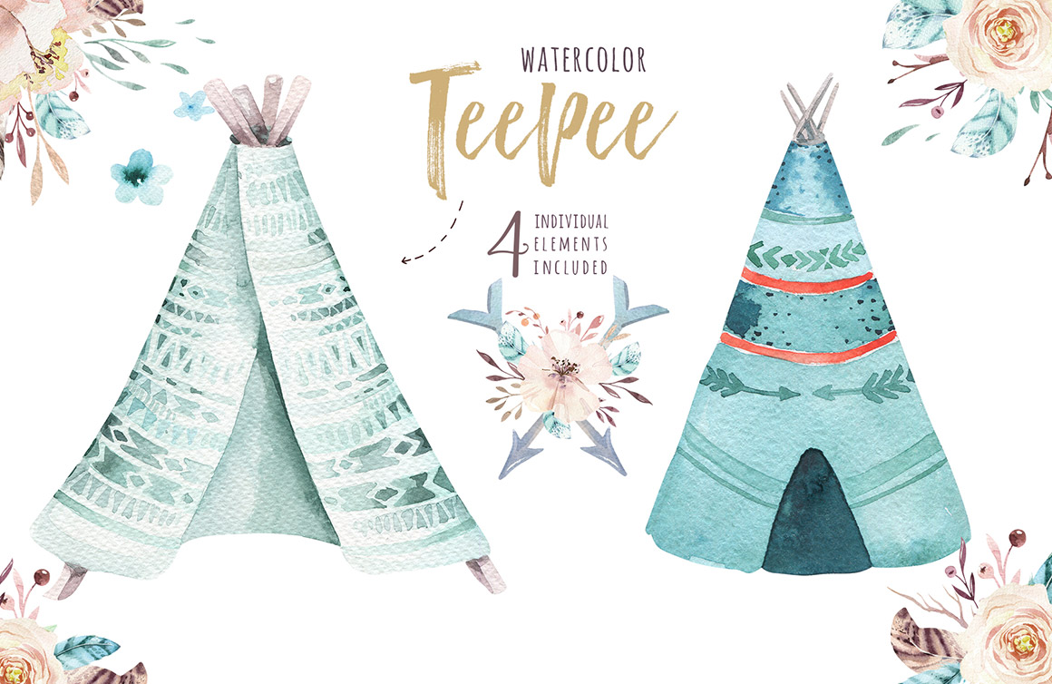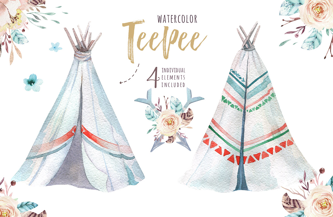 - 4 teepee images without floral elements (PNG, 300dpi, transparent background)