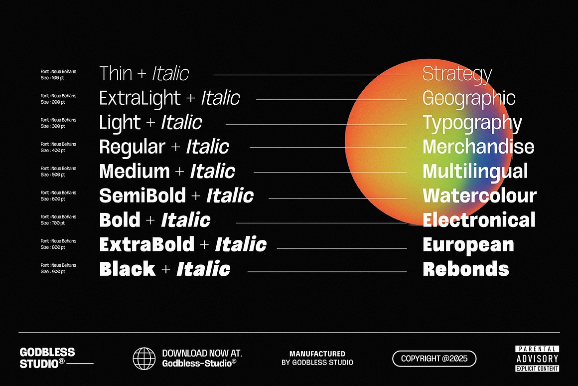 - 9 Weights, 18 Styles – From delicate Thin to powerful Black, plus matching italics for all styles.