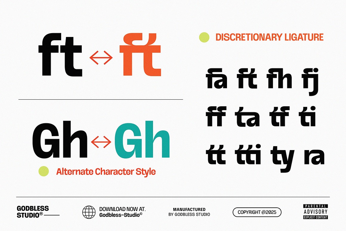 - Alternate Characters – Experiment with alternate letterforms for added personality and flexibility.